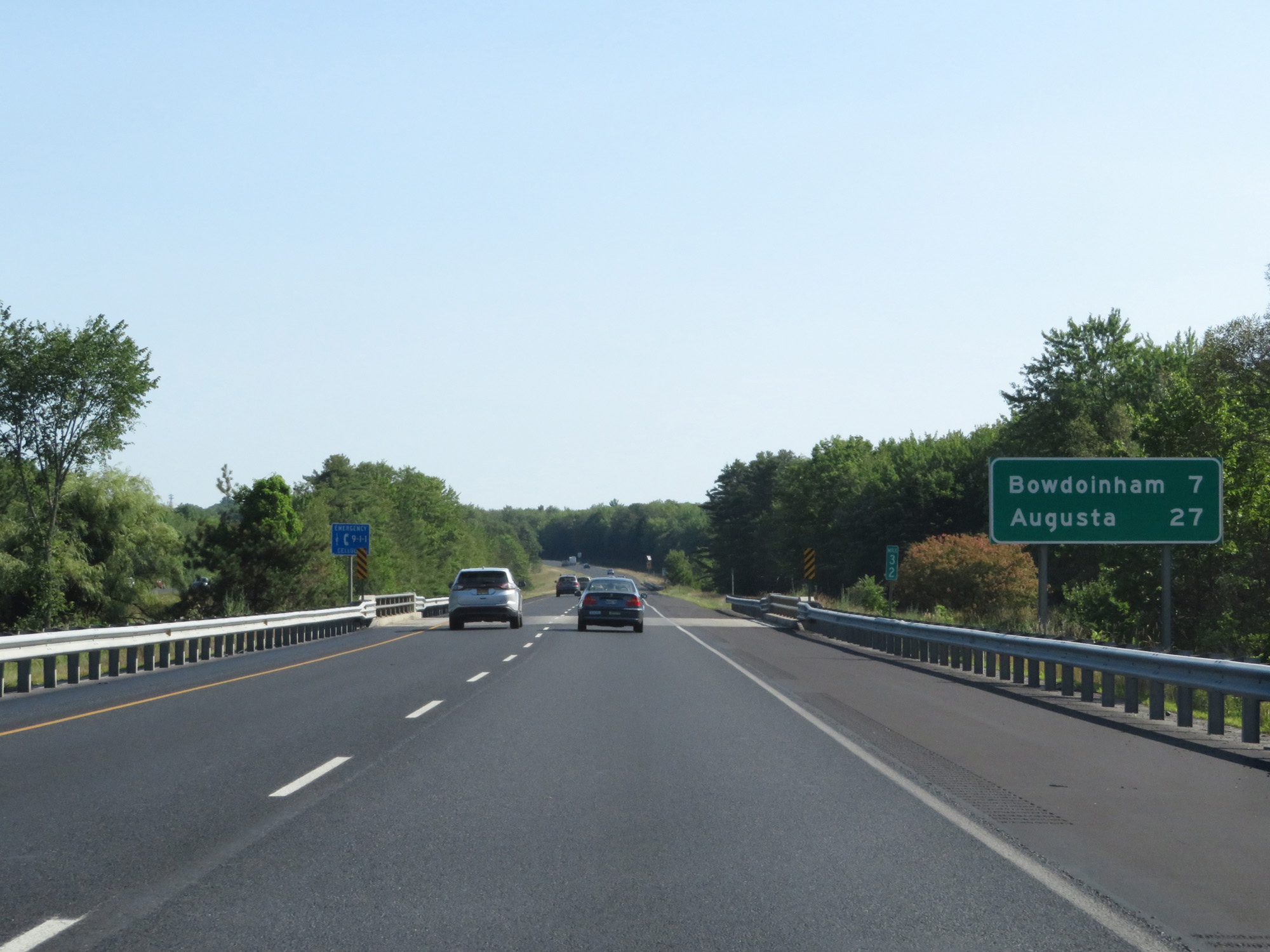 Mileage sign at mile marker 32. It's 7 miles to Bowdoinham and 27 miles to Augusta. (Photo taken 8/7/17). |