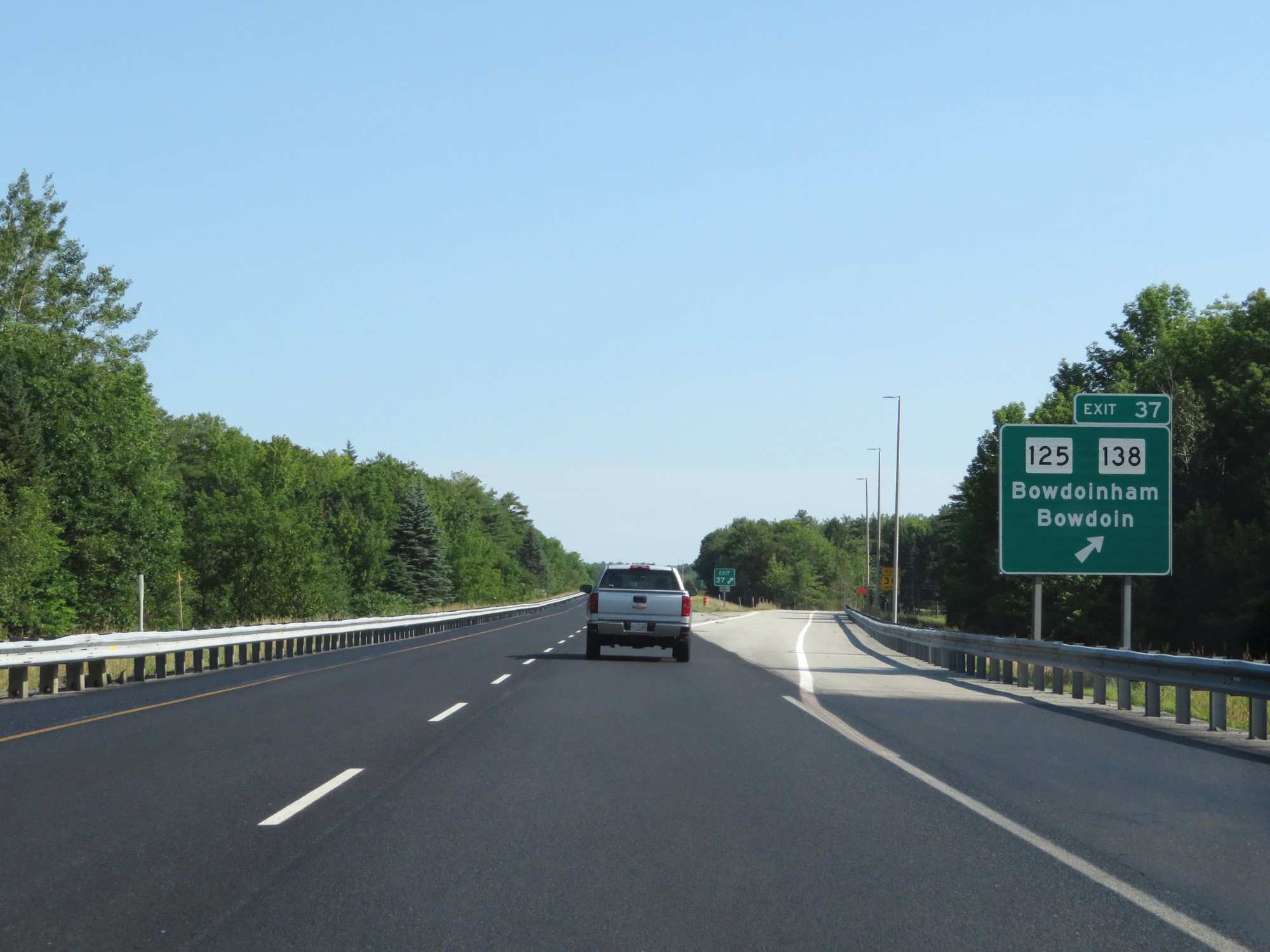 Interstate 295 North at Exit 37: ME 125 / ME 138 - Bowdoinham / Bowdoin (Photo taken 8/7/17). |