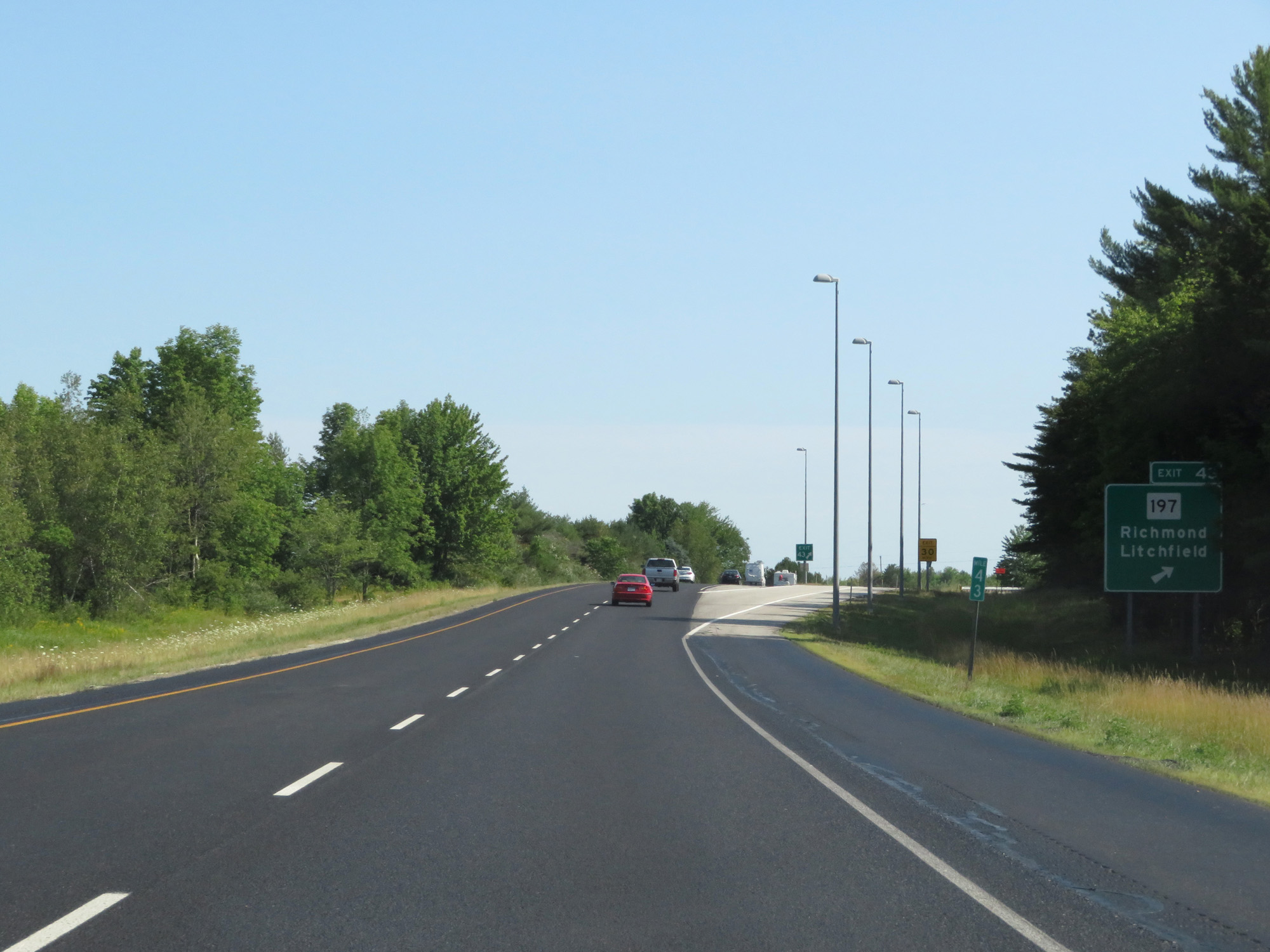 Interstate 295 North at Exit 43: ME 197 - Richmond / Litchfield (Photo taken 8/7/17). |