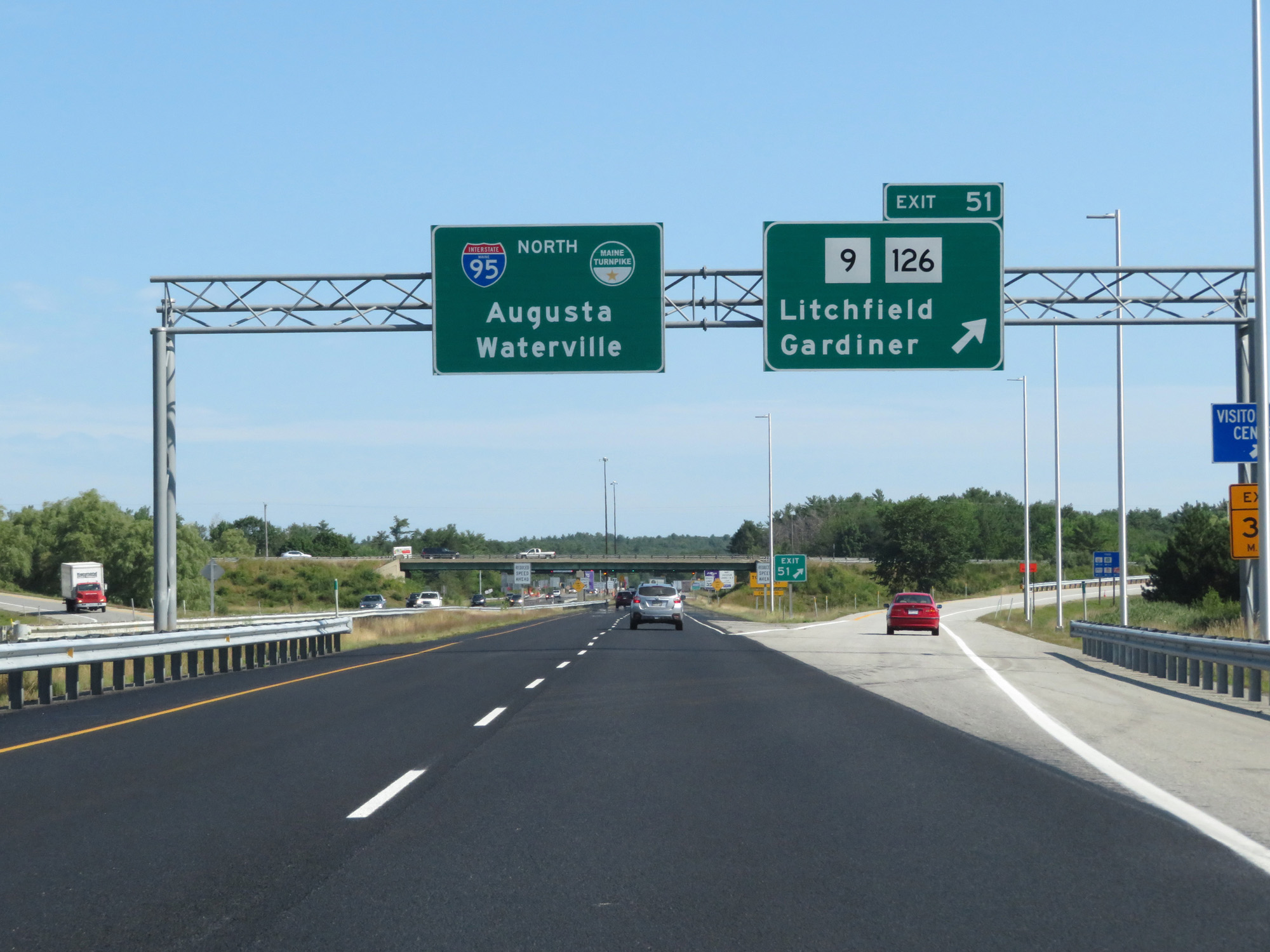 Interstate 295 North at Exit 51: ME 9 / ME 126 - Litchfield / Gardiner (Photo taken 8/7/17). |