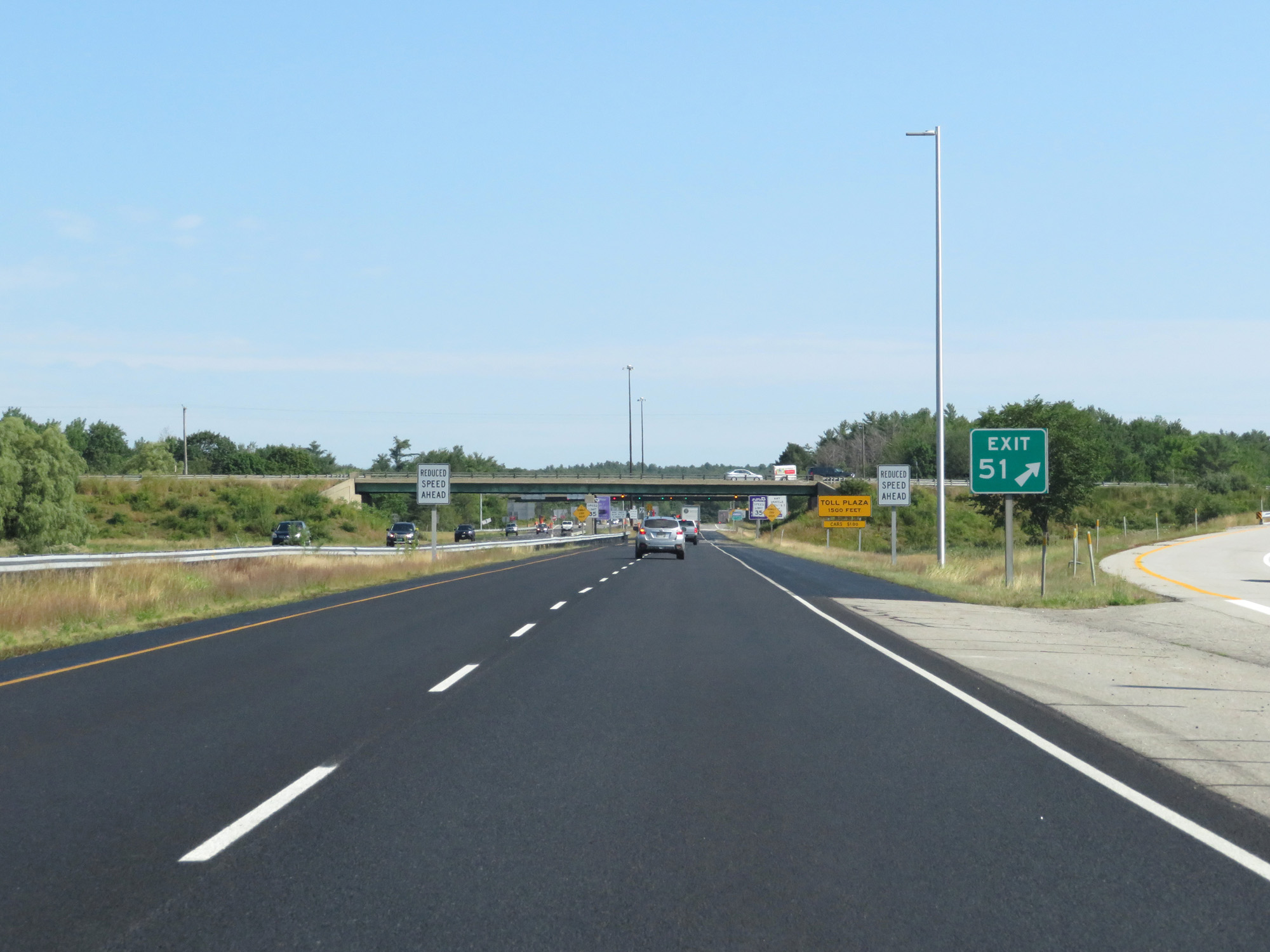 Interstate 295 North approaching the toll plaza for the Maine Turnpike - 1500 feet. (Photo taken 8/7/17). |