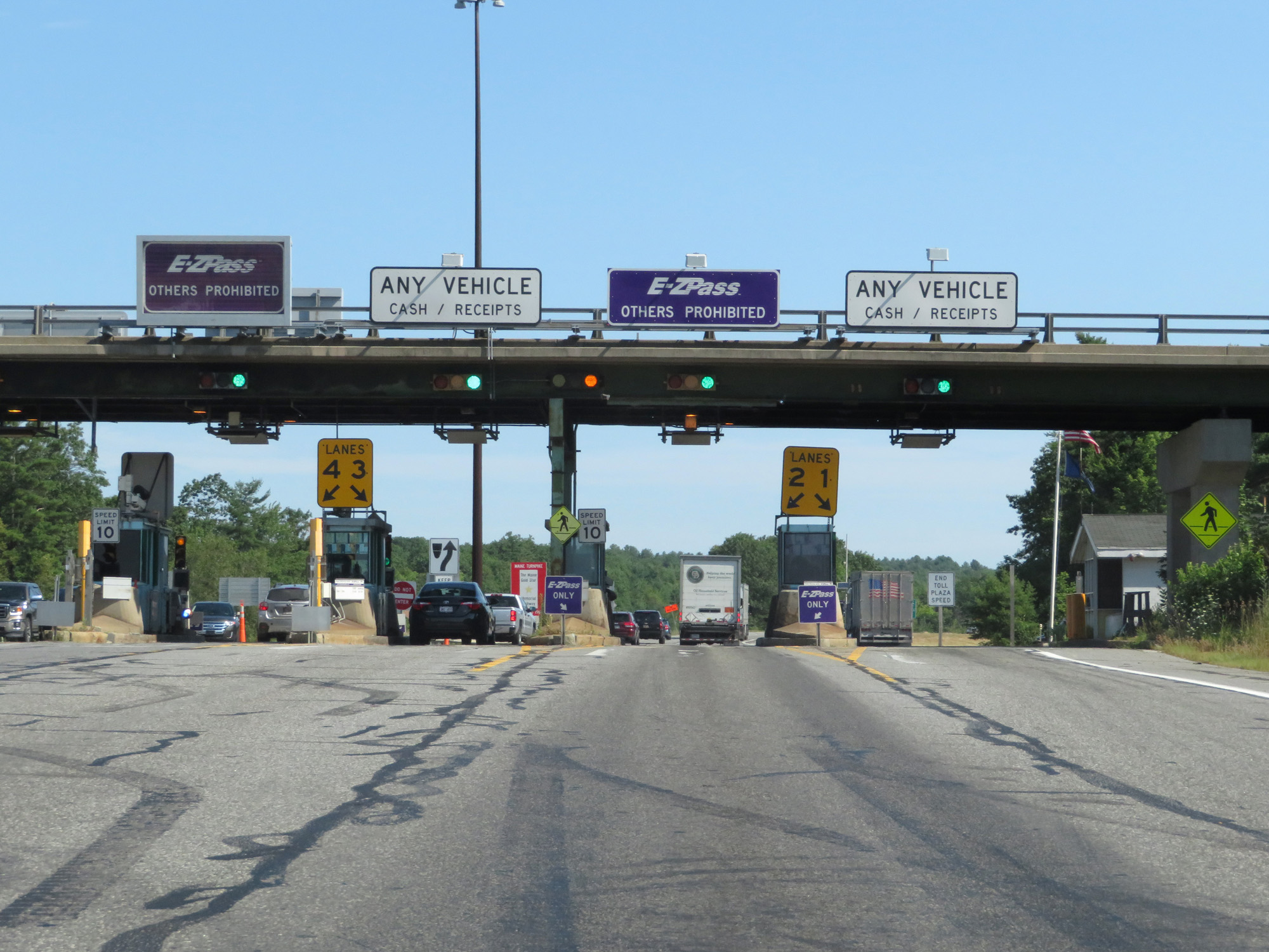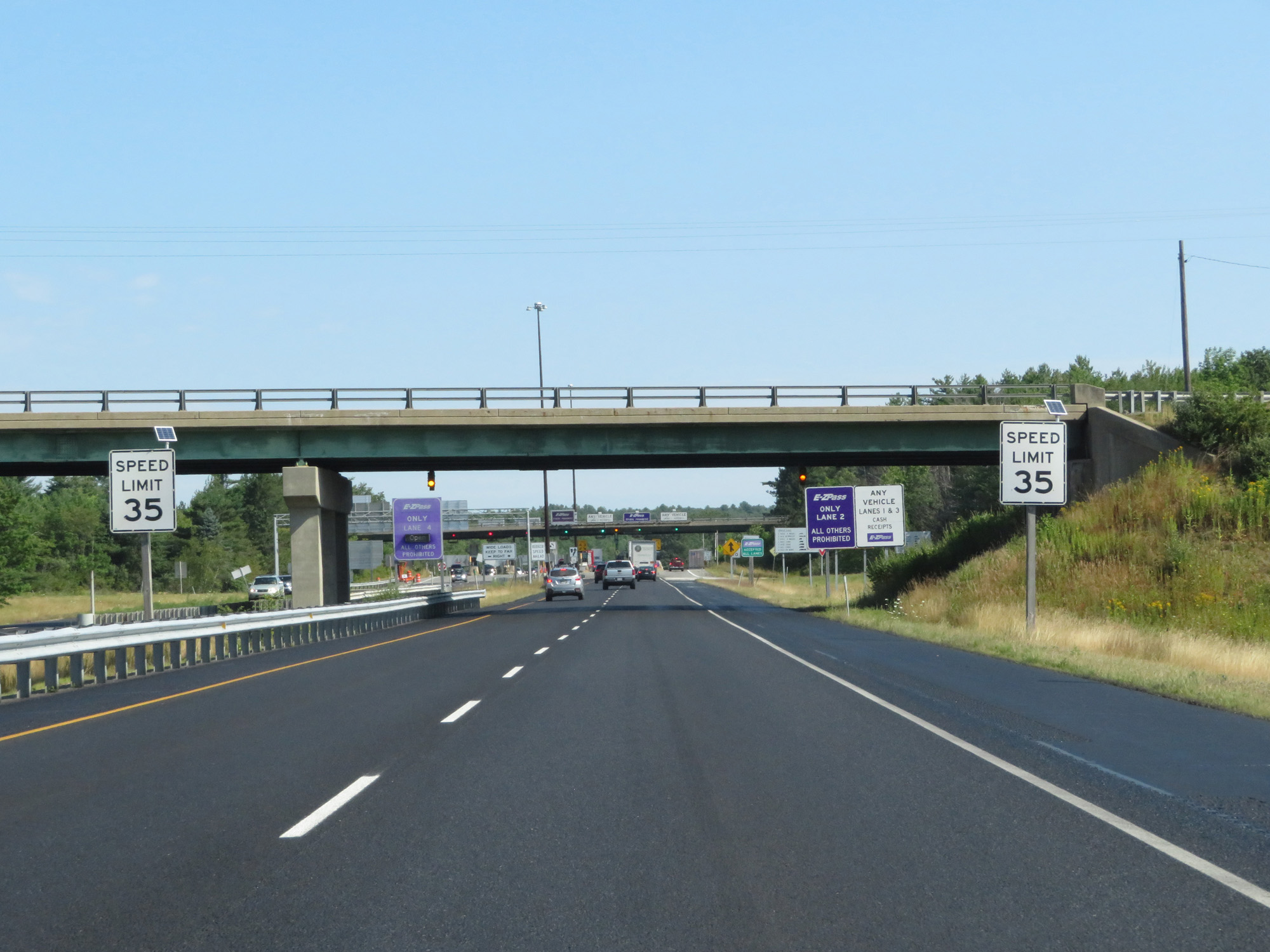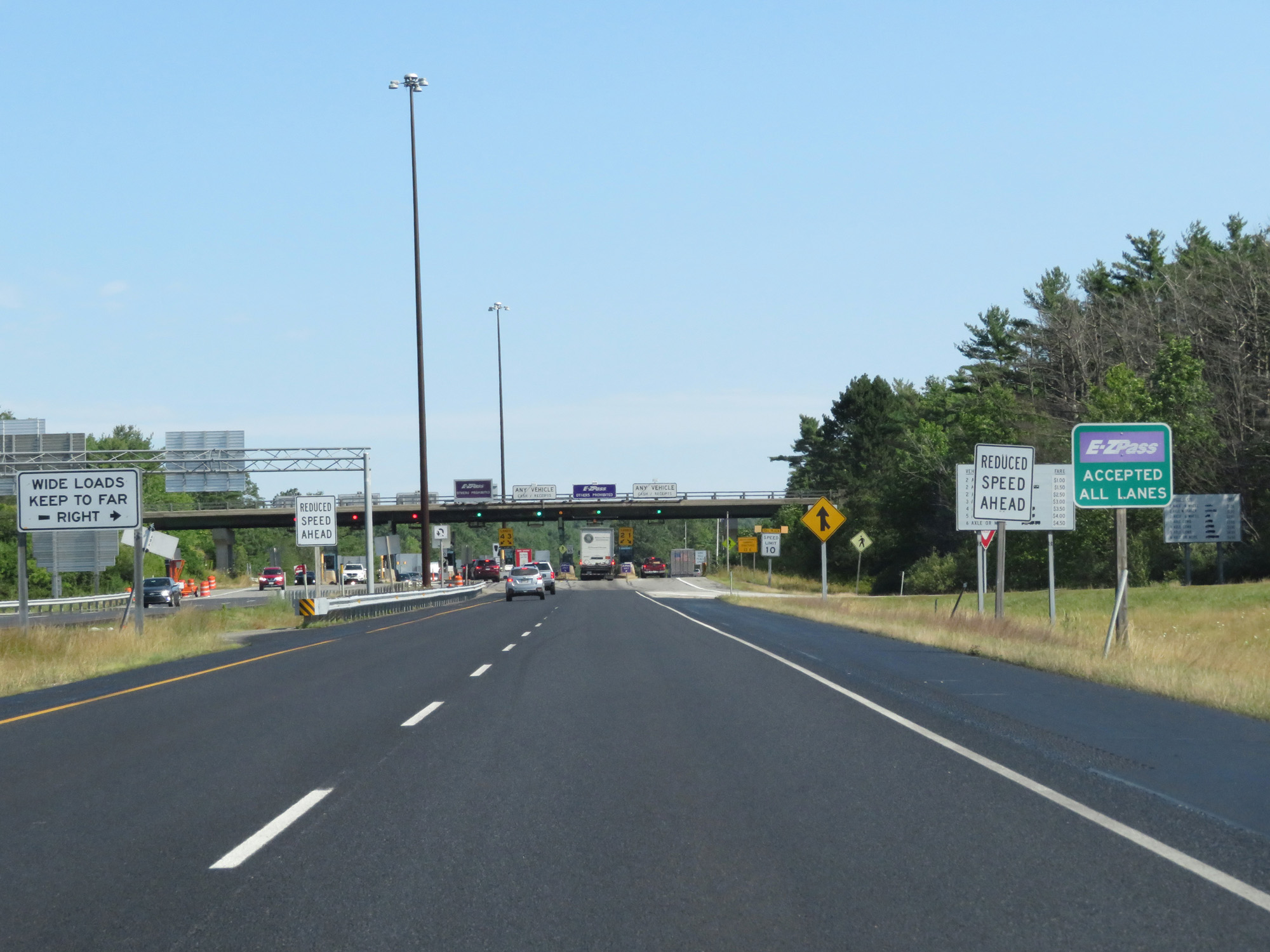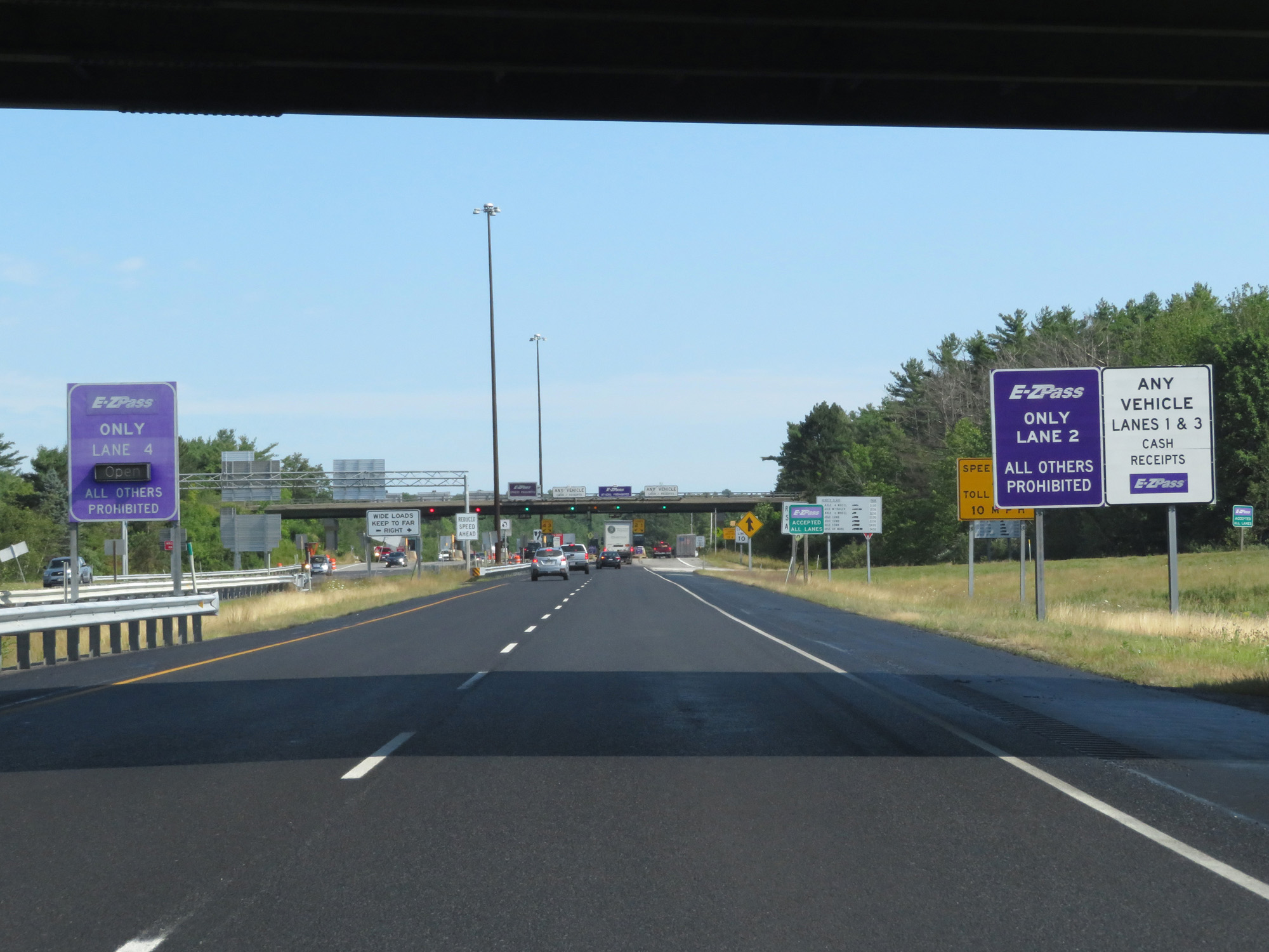 EZ Pass is accepted in any lane. Wide loads should keep to the far right. (Photo taken 8/7/17). |