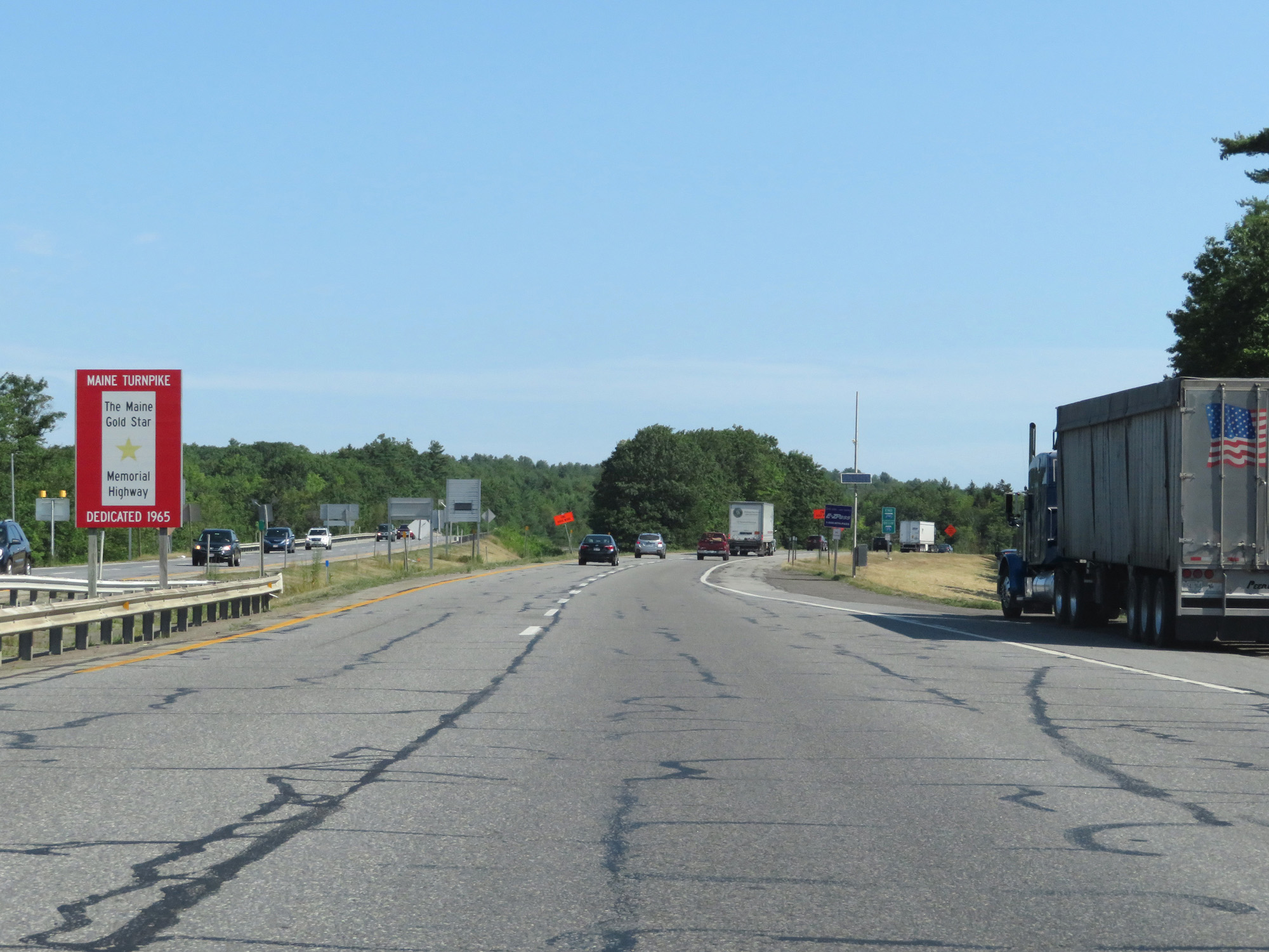 Leaving the toll plaza, this sign welcomes you to the Maine Turnpike. (Photo taken 8/7/17). |