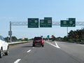 These signs direct EZ Pass customers and cash customers on which lanes to use at the toll plaza ahead. (Photo taken 8/7/17). |