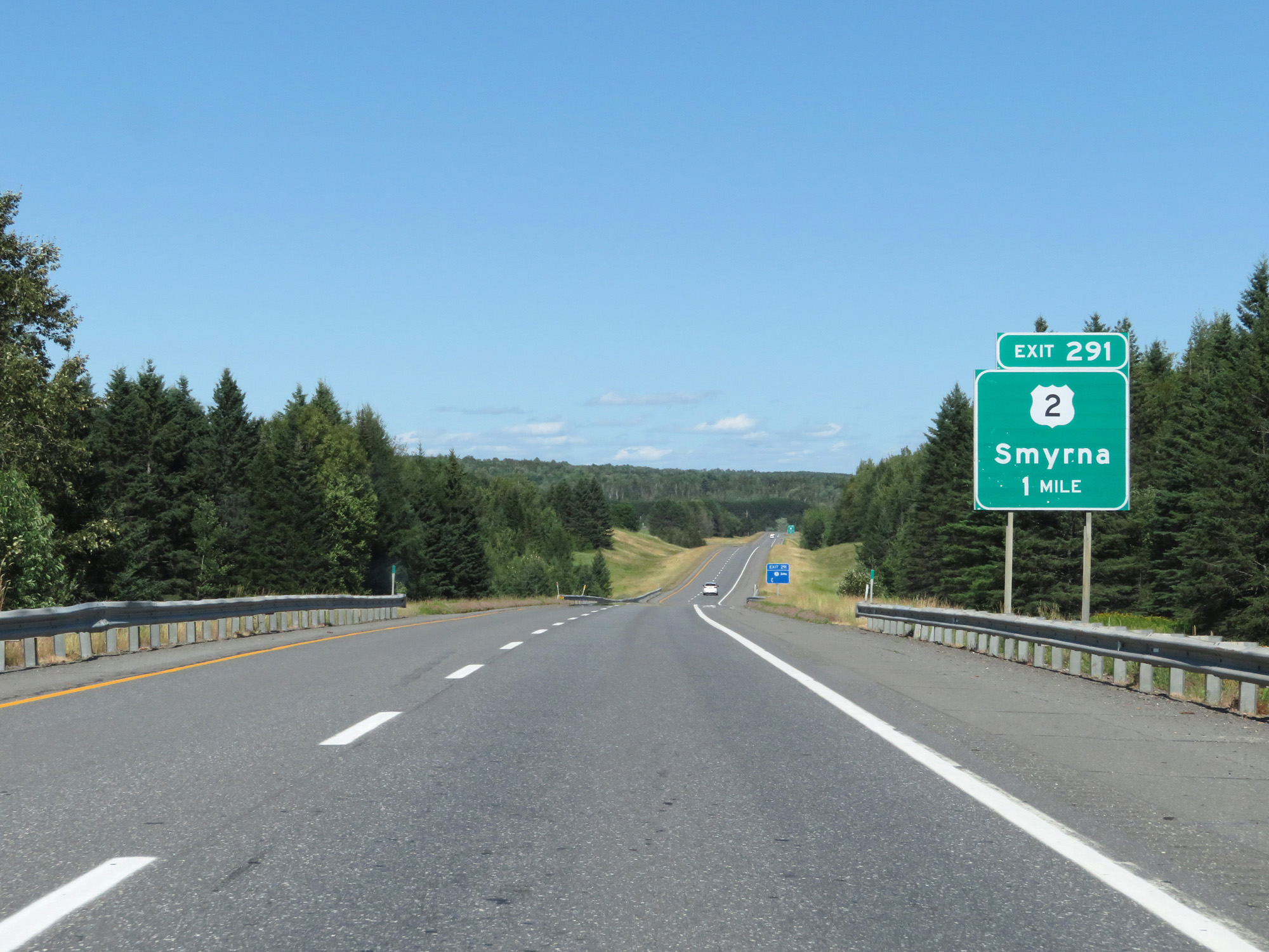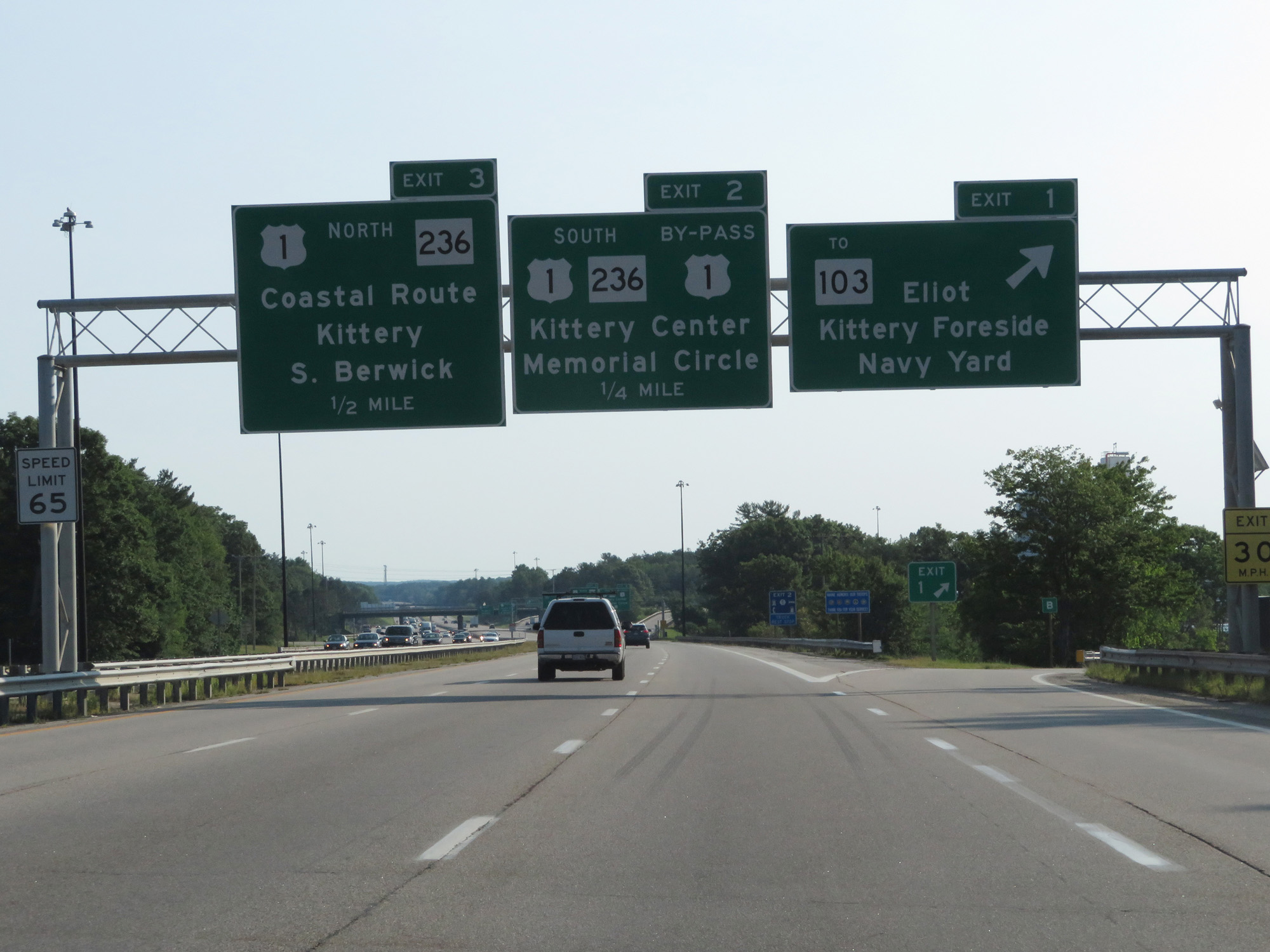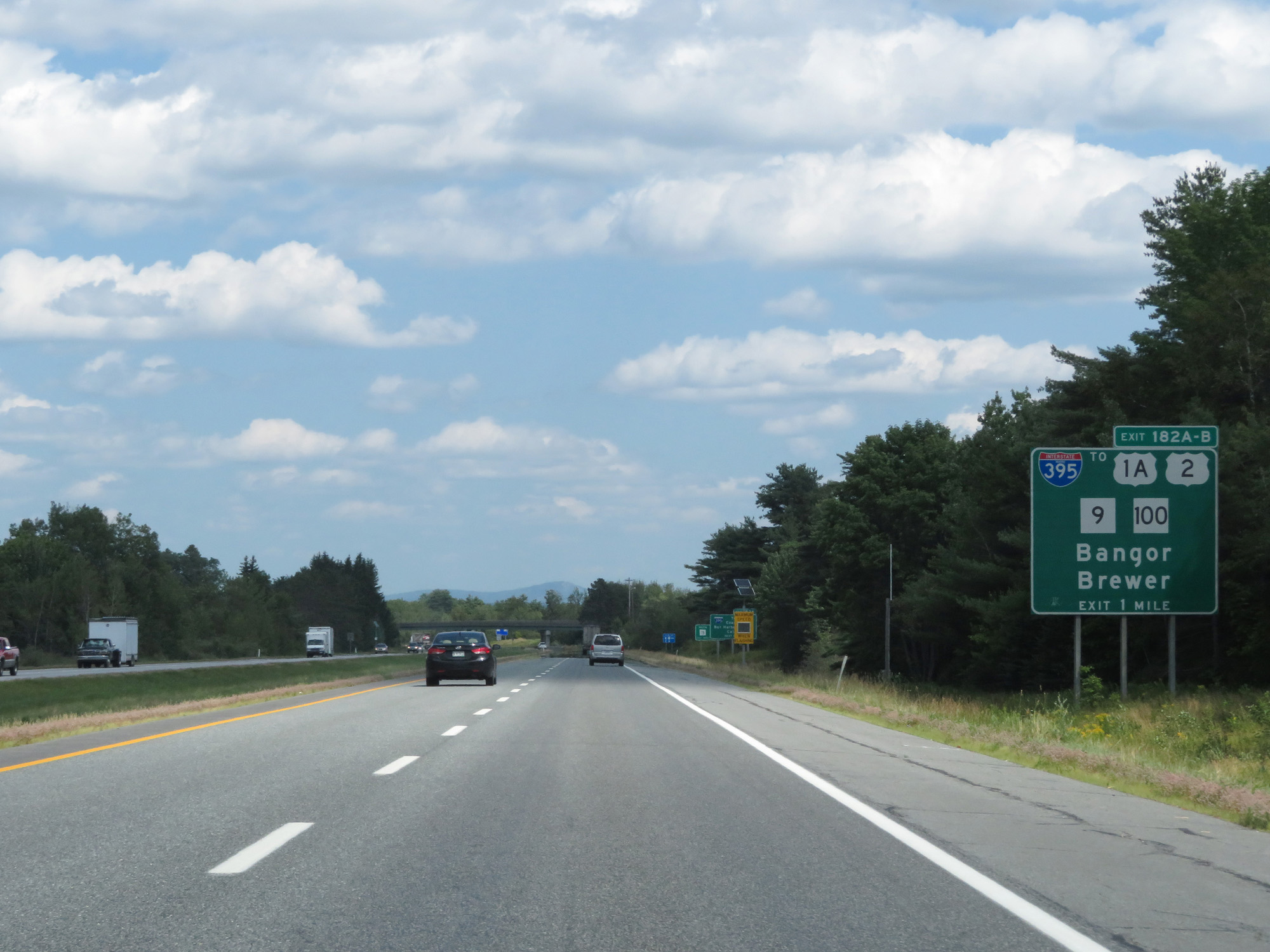 Interstate 95 North (Maine Turnpike) approaching Exit 52 - 1 mile. (Photo taken 8/7/17). |