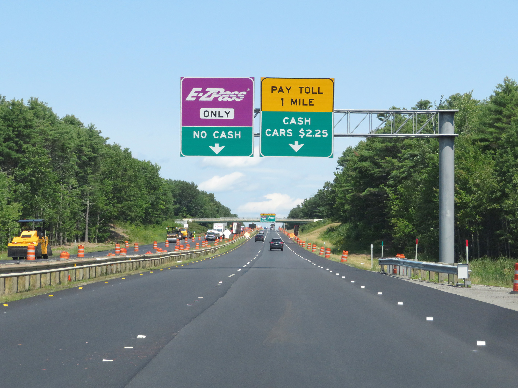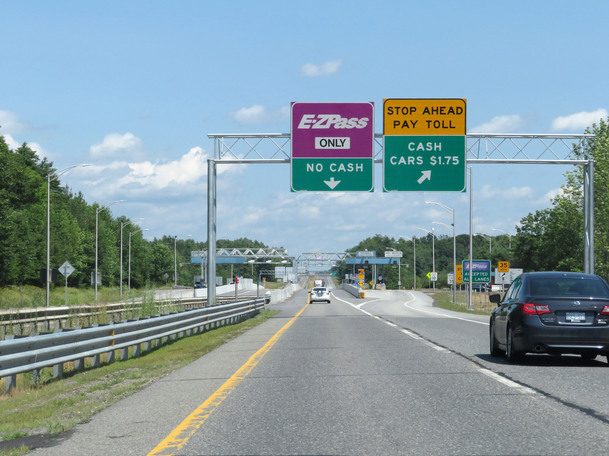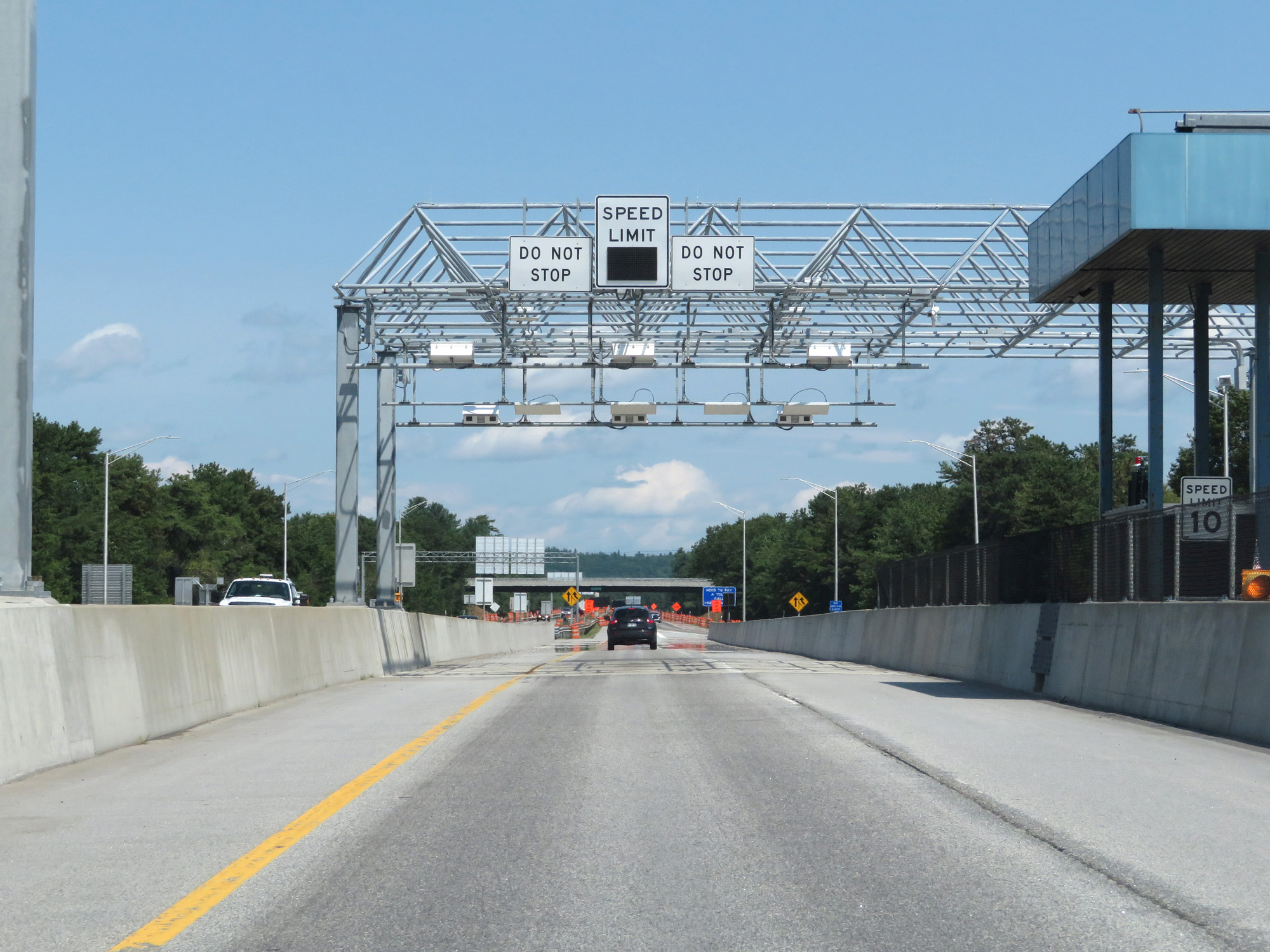 View of the New Gloucester Toll Plaza on Interstate 95 North (Maine Turnpike). (Photo taken 8/7/17). |