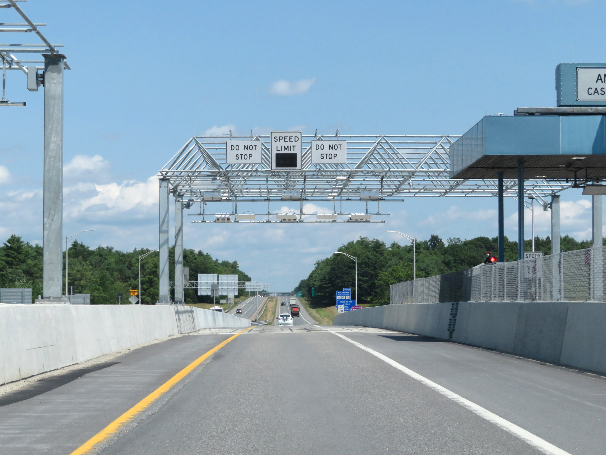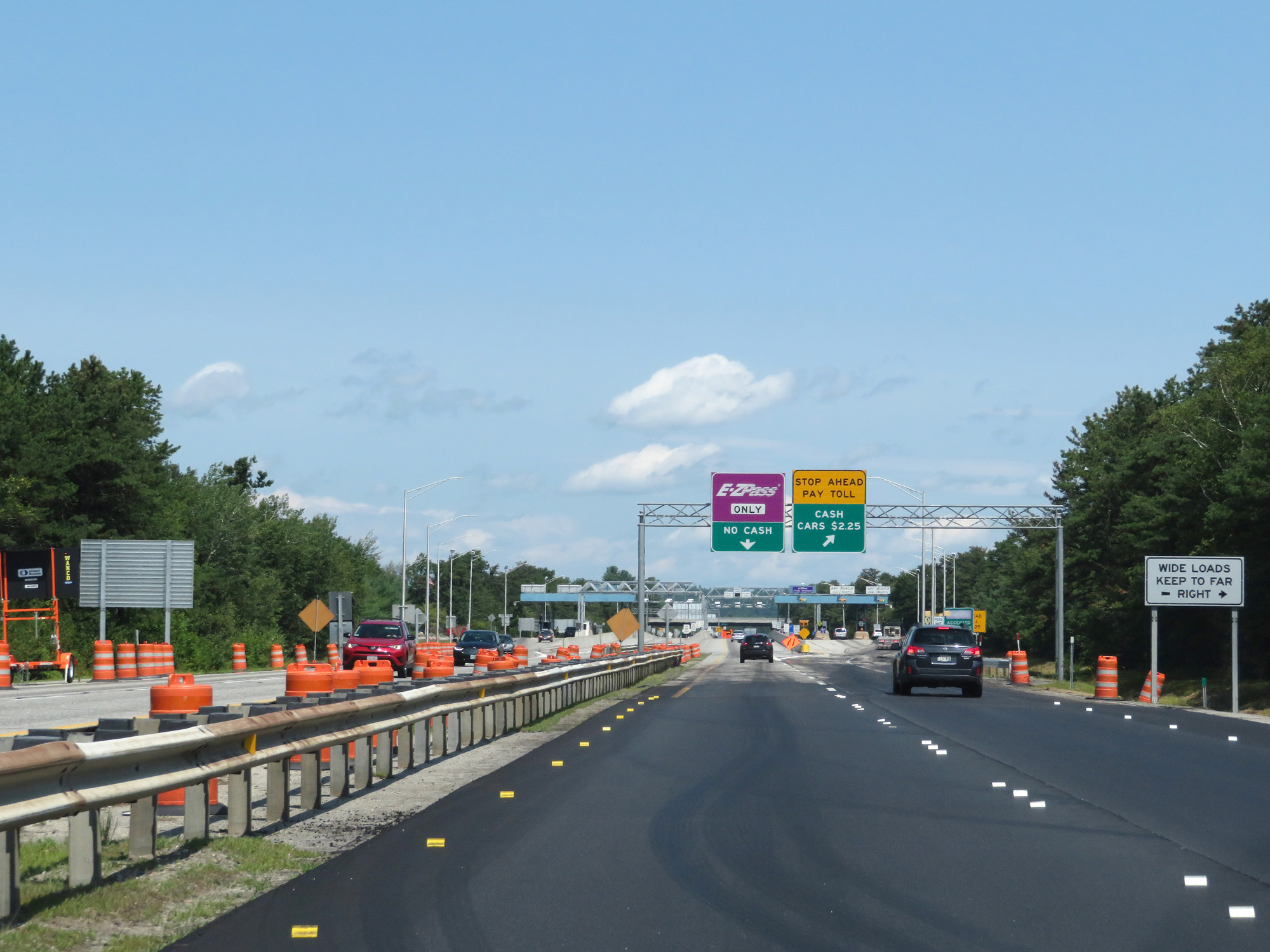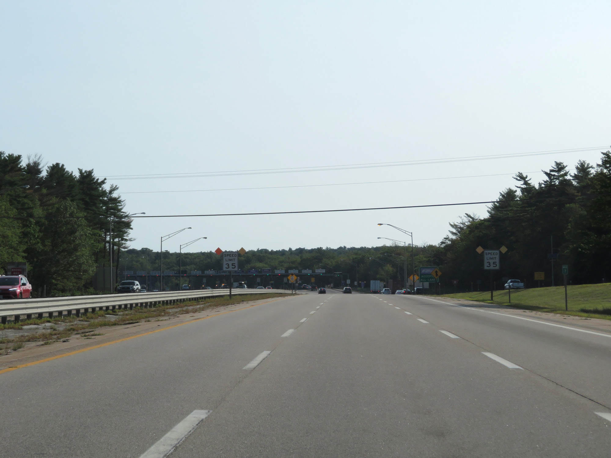 View of the New Gloucester Toll Plaza on Interstate 95 North (Maine Turnpike). (Photo taken 8/7/17). |