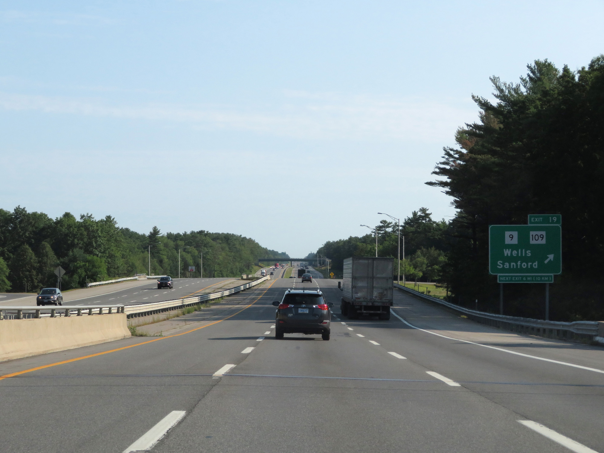 Interstate 95 North (Maine Turnpike) at mile marker 51. (Photo taken 8/7/17). |