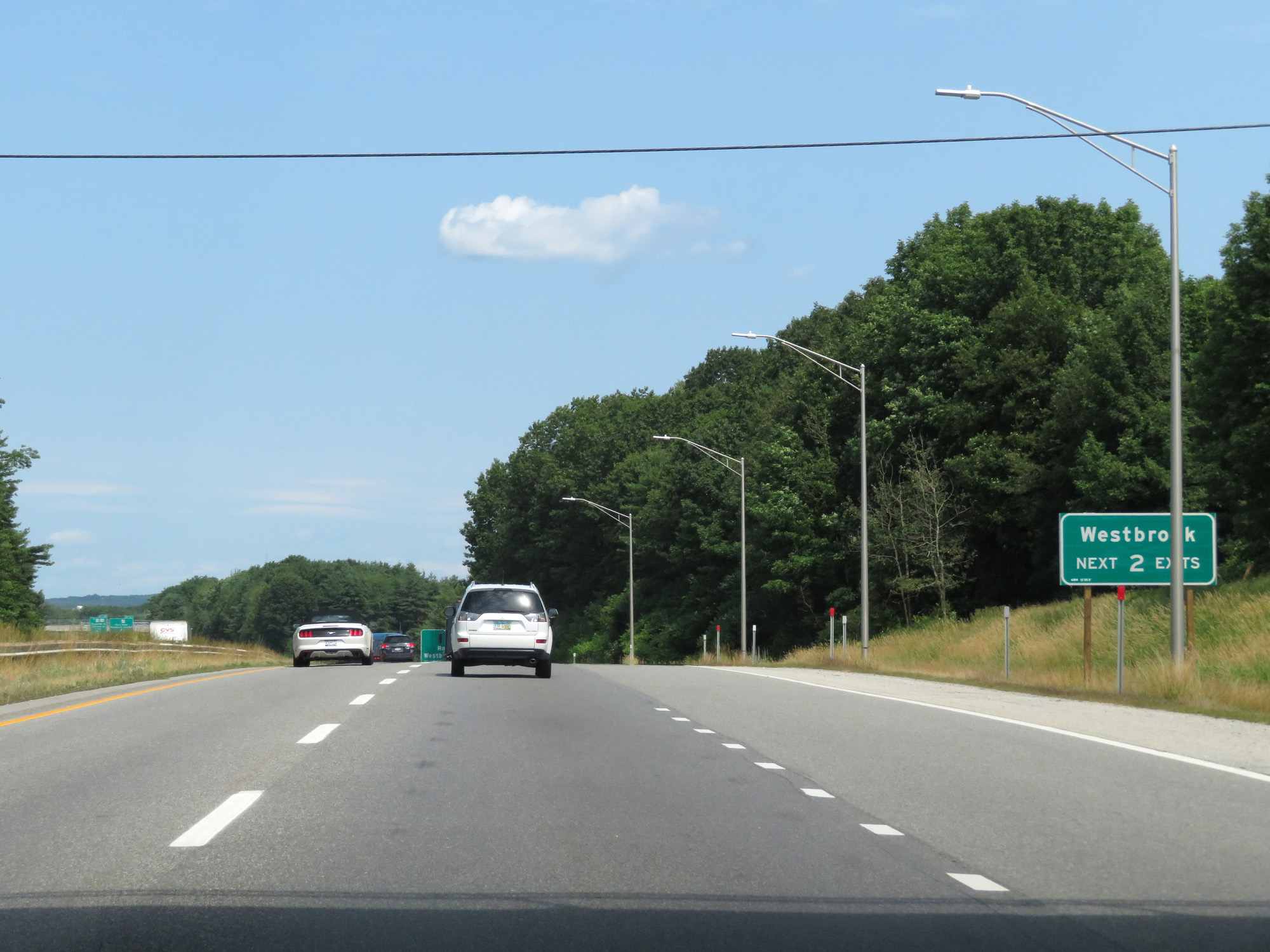 Interstate 95 North (Maine Turnpike) approaching Exit 102 - 1/2 mile. (Photo taken 8/7/17). |