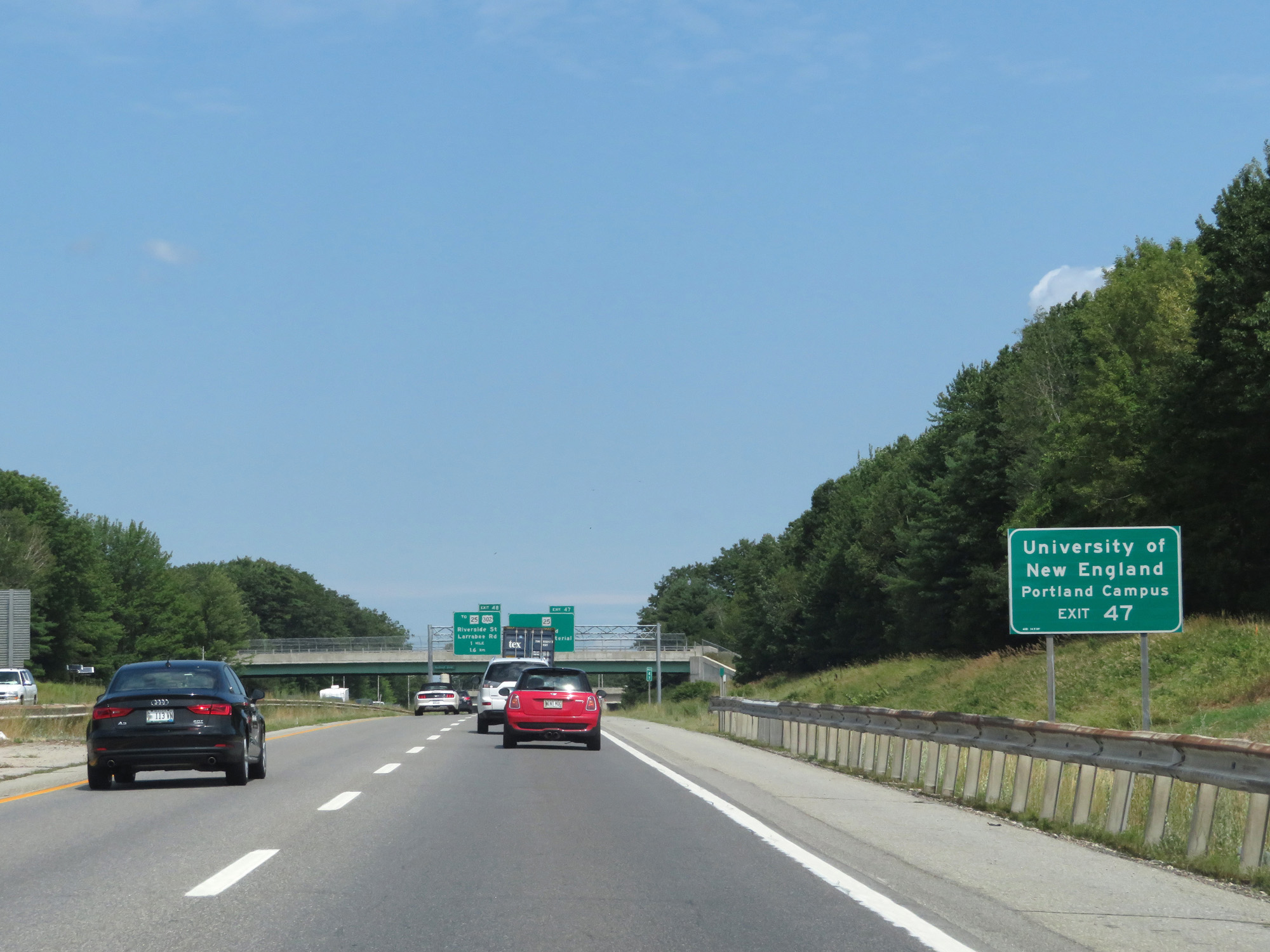Take Exit 80 to the University of Southern Maine Lewiston Campus. (Photo taken 8/7/17). |