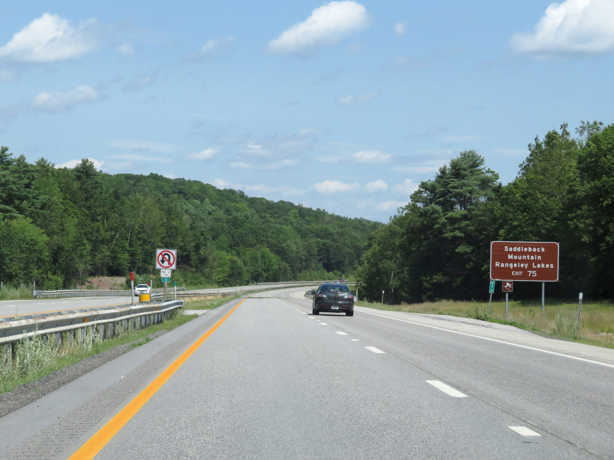 Take Exit 75 to Saddleback Mountain and Rangeley Lakes ski areas as well. (Photo taken 8/7/17). |
