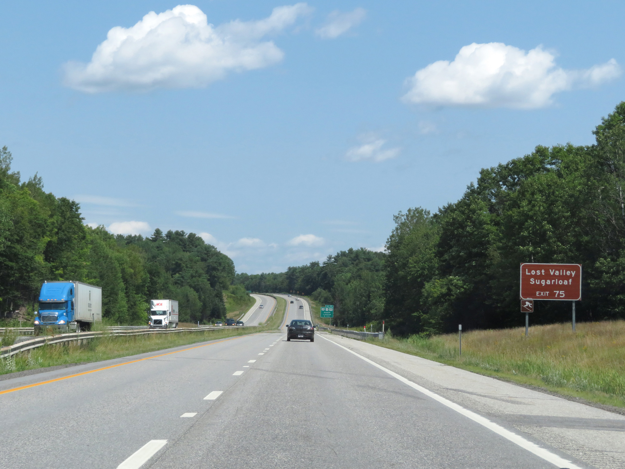 The Lost Valley and Sugarloaf ski areas are also accessible via Exit 75. (Photo taken 8/7/17). |