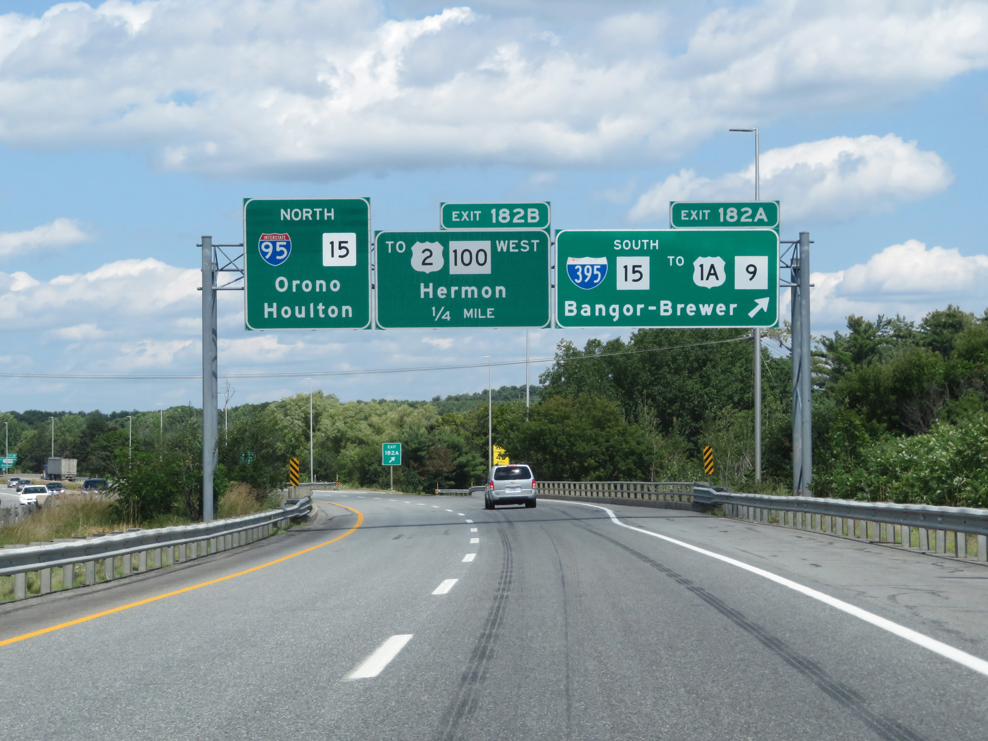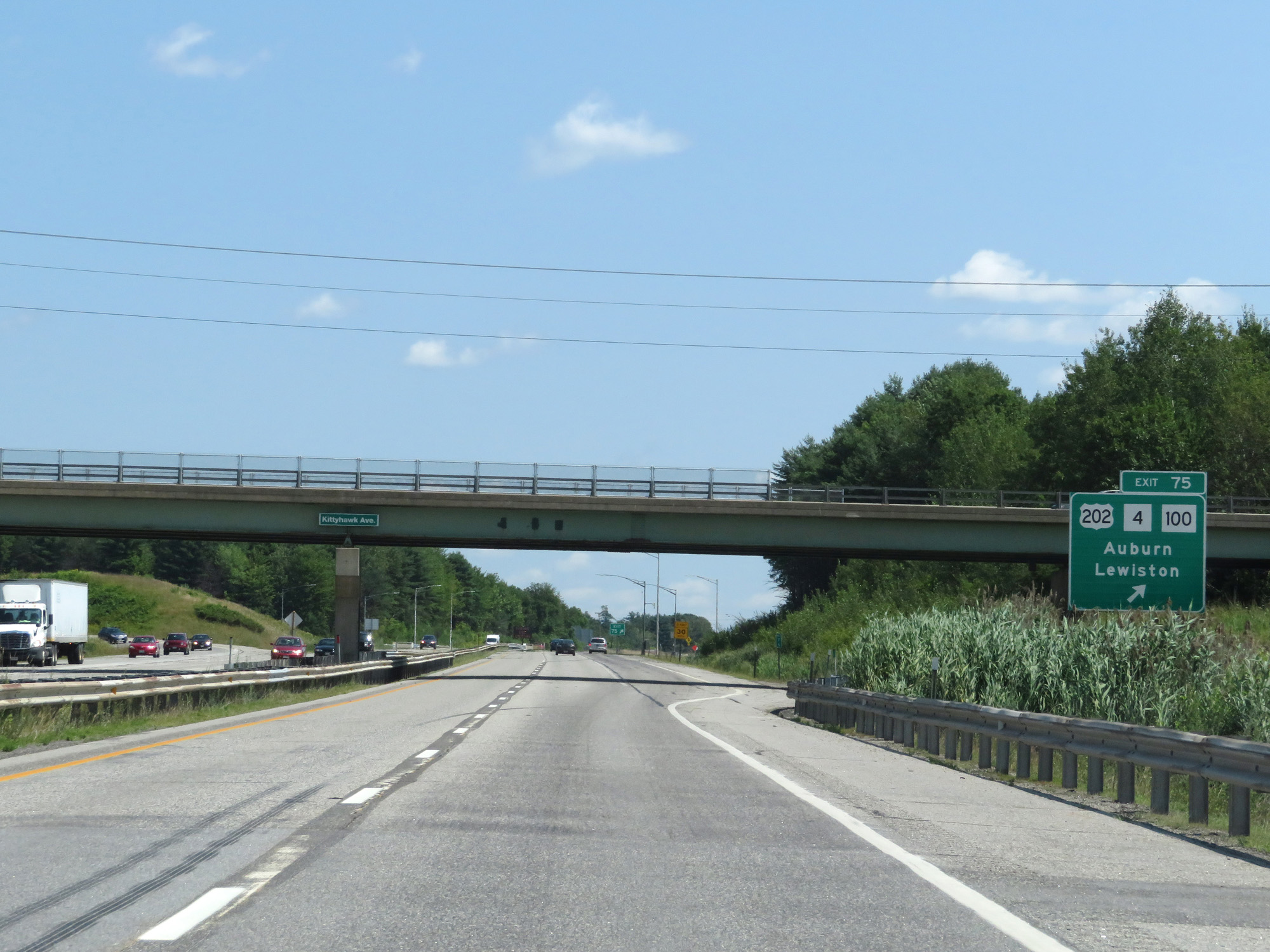 Interstate 95 North (Maine Turnpike) at Exit 75: US 202 / ME 4 / ME 100 - Auburn / Lewiston (Photo taken 8/7/17). |