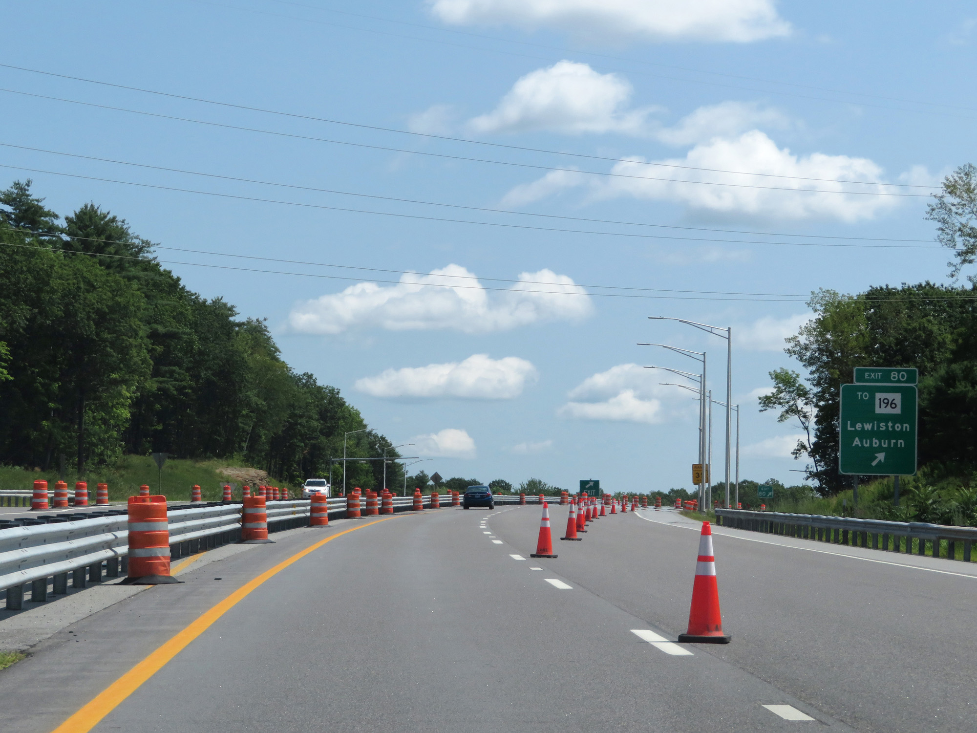 Interstate 95 North (Maine Turnpike) at Exit 80: To ME 196 - Lewiston / Auburn (Photo taken 8/7/17). |