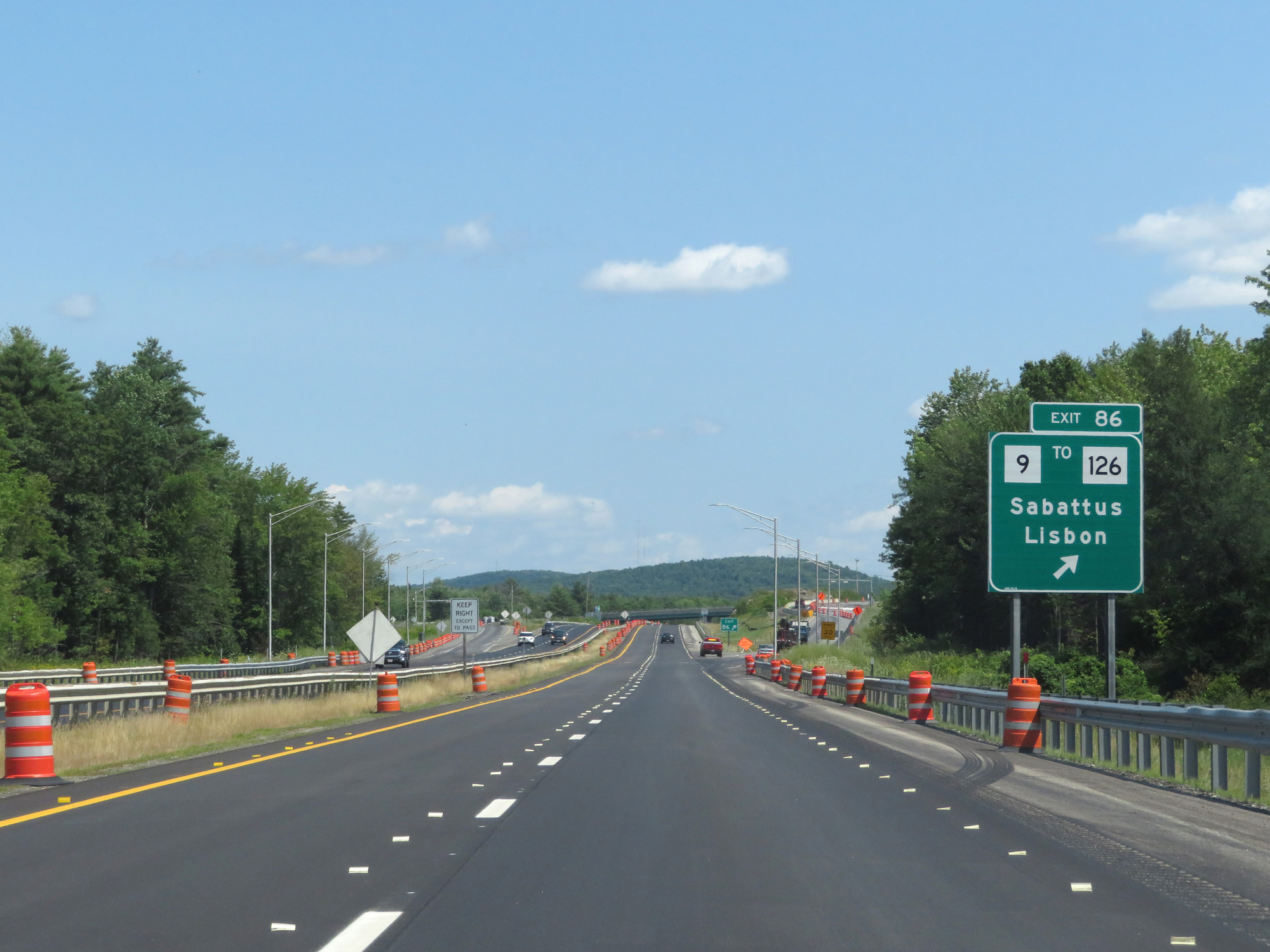 Interstate 95 North (Maine Turnpike) at Exit 86: ME 9 / To ME 126 - Sabattus / Lisbon (Photo taken 8/7/17). |