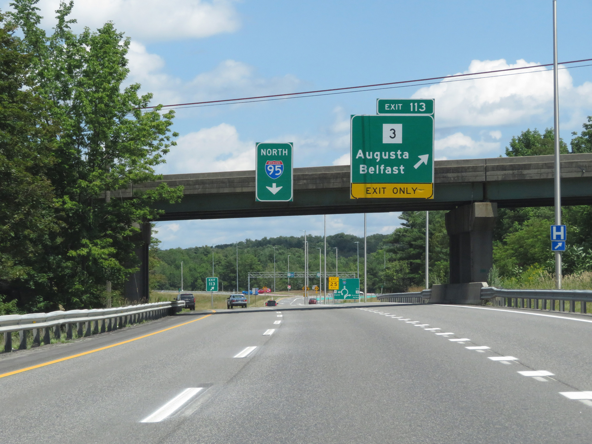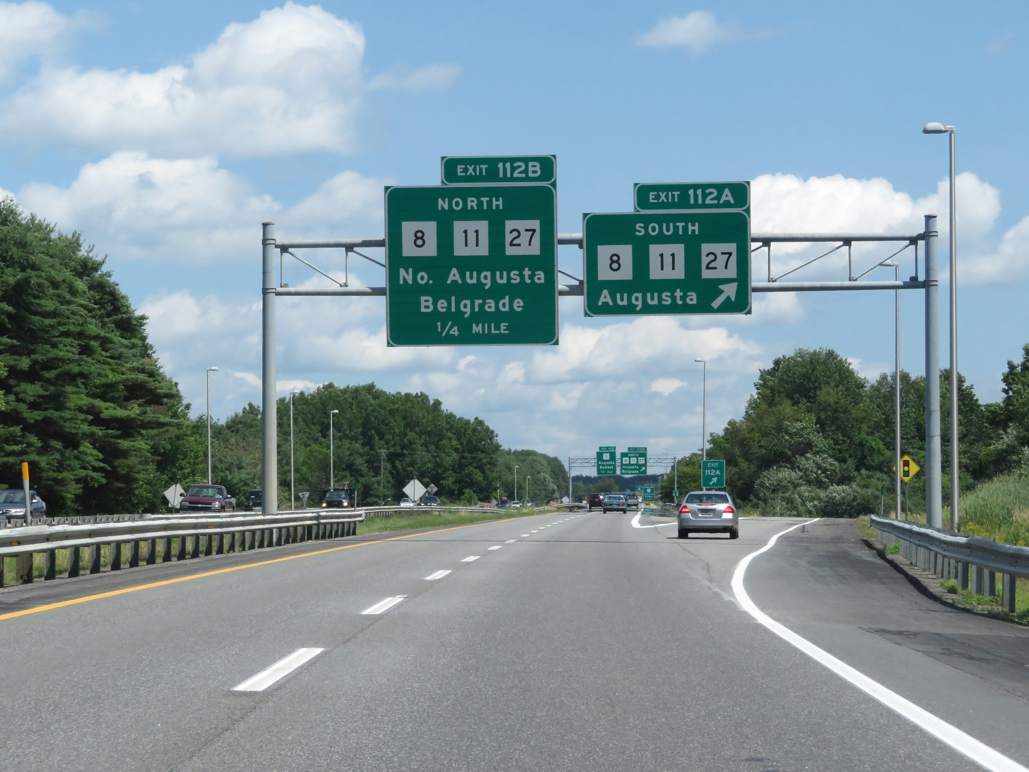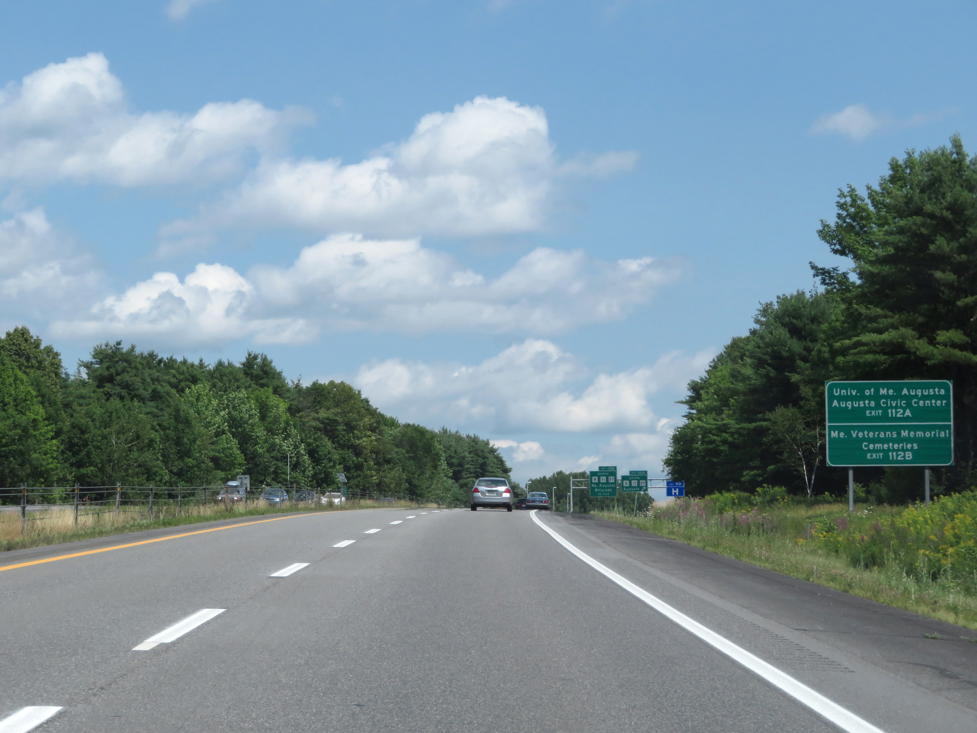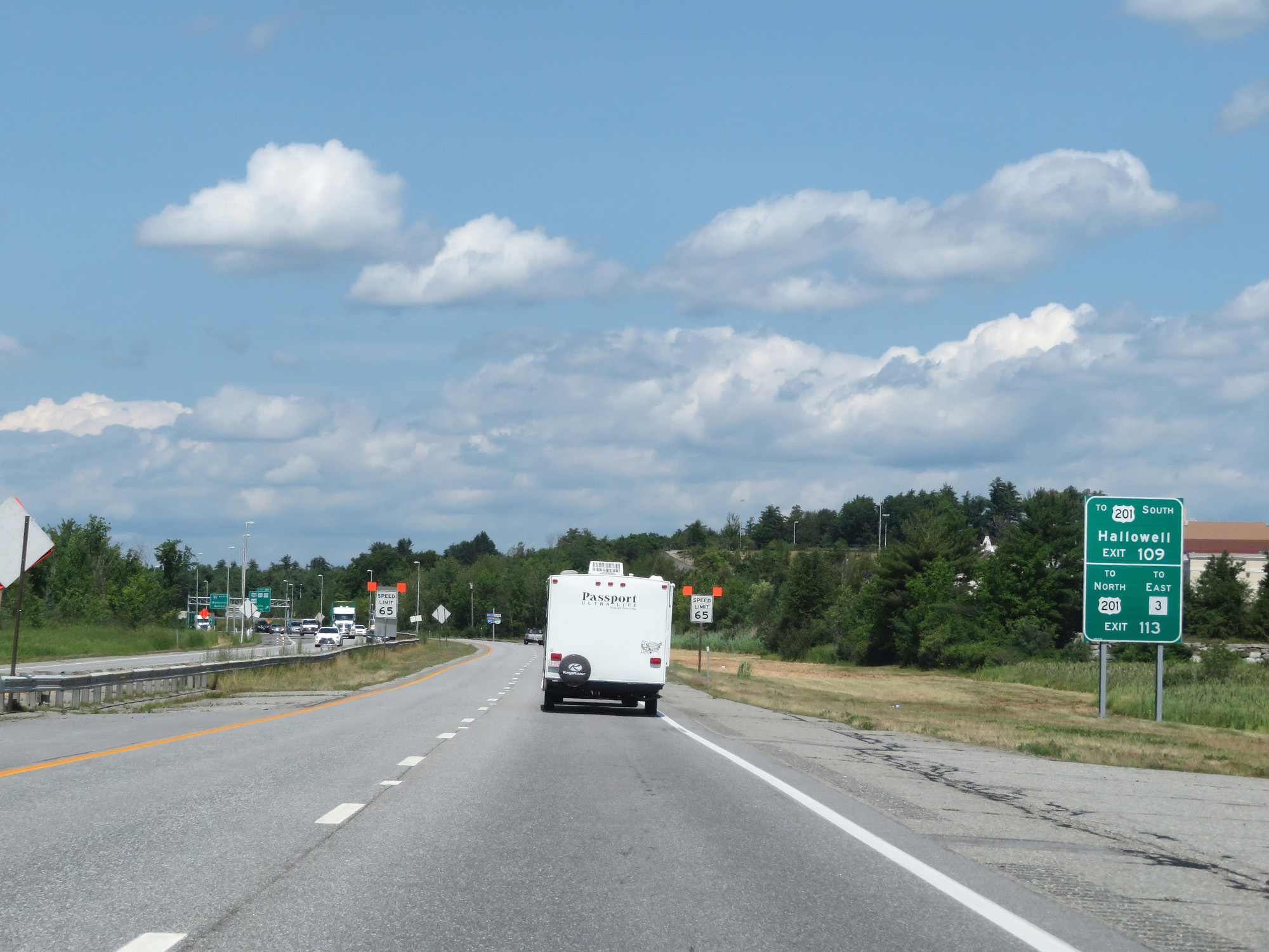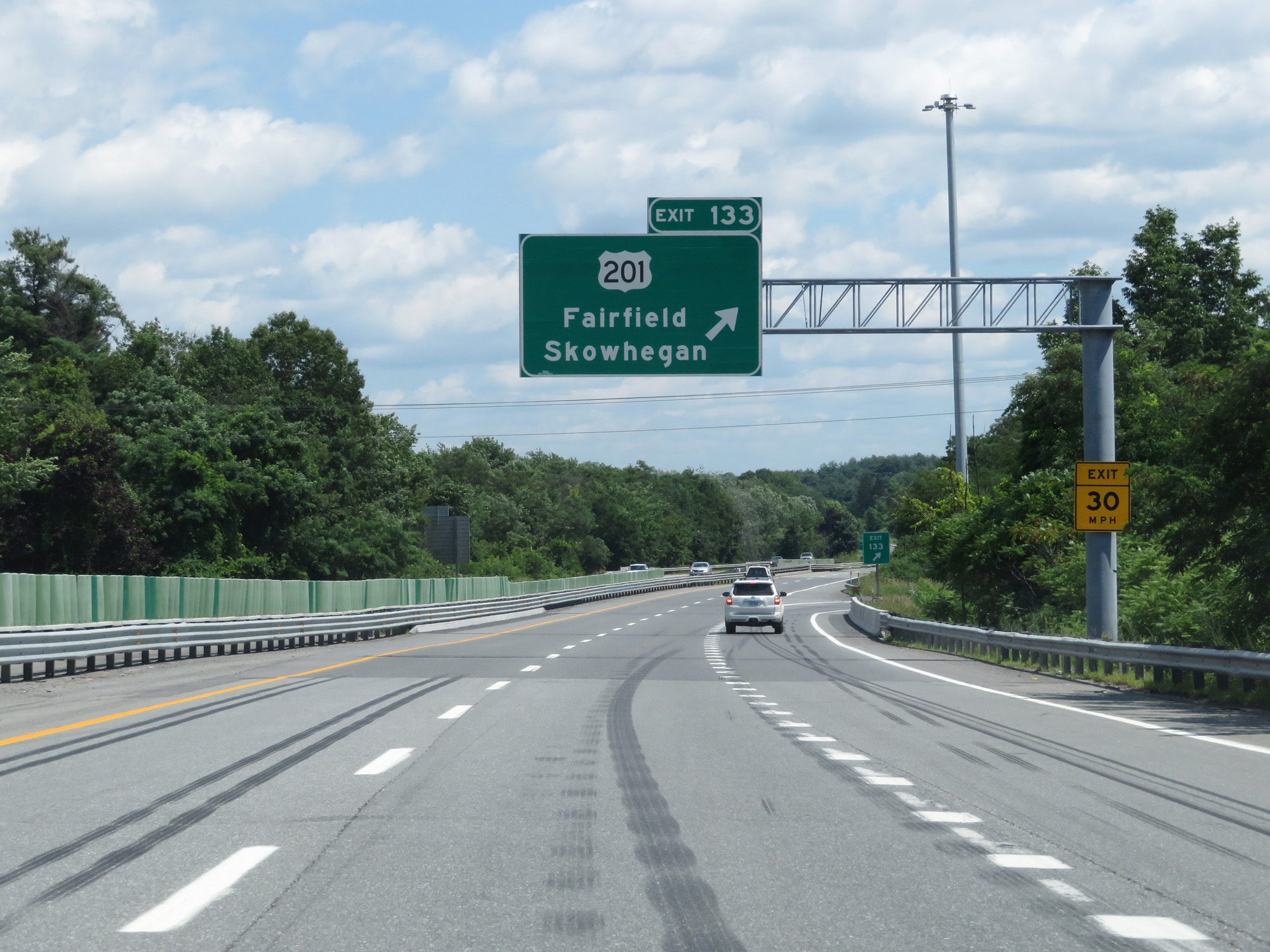 Take Exit 109 to US 201 South toward Hallowell. Take Exit 113 to US 201 North to ME 3 East. (Photo taken 8/7/17). |