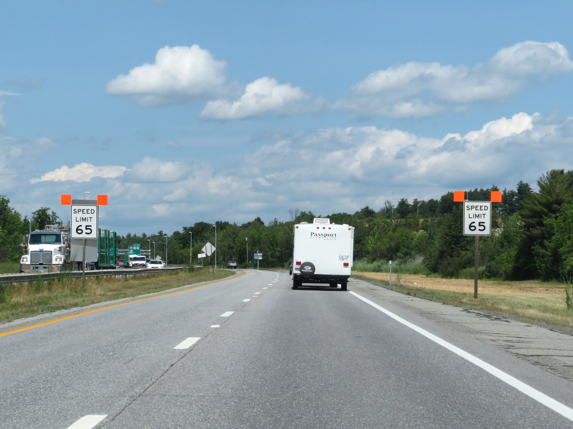 Interstate 95 North (Maine Turnpike) at mile marker 65. (Photo taken 8/7/17). |