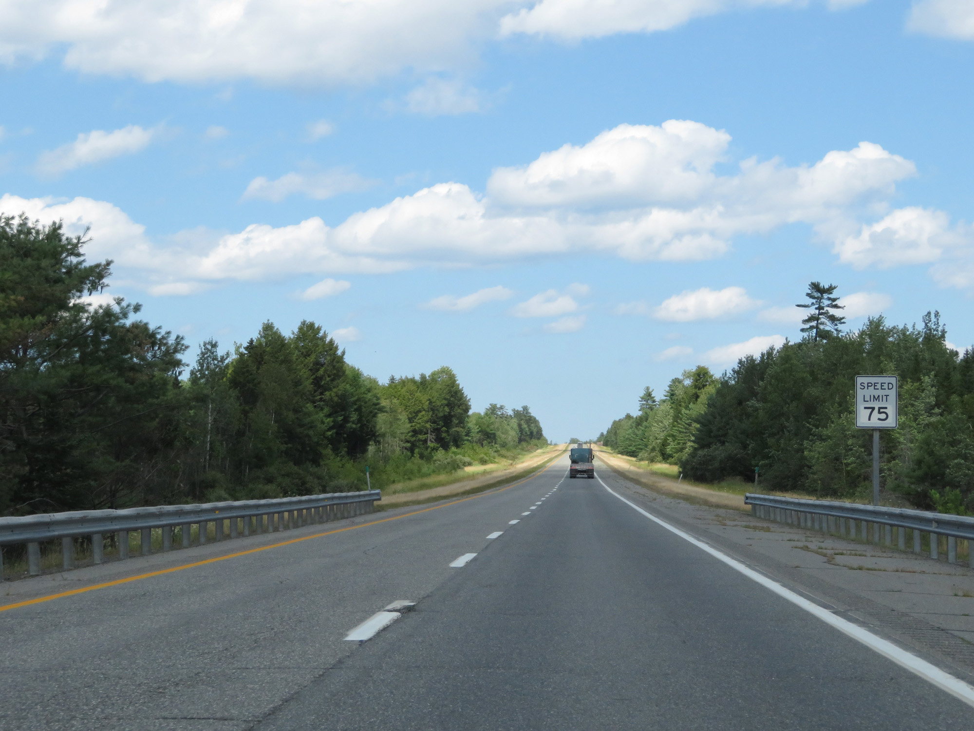 Interstate 95 North (Maine Turnpike) approaching the Gray Service Plaza - 1 mile. (Photo taken 8/7/17). |