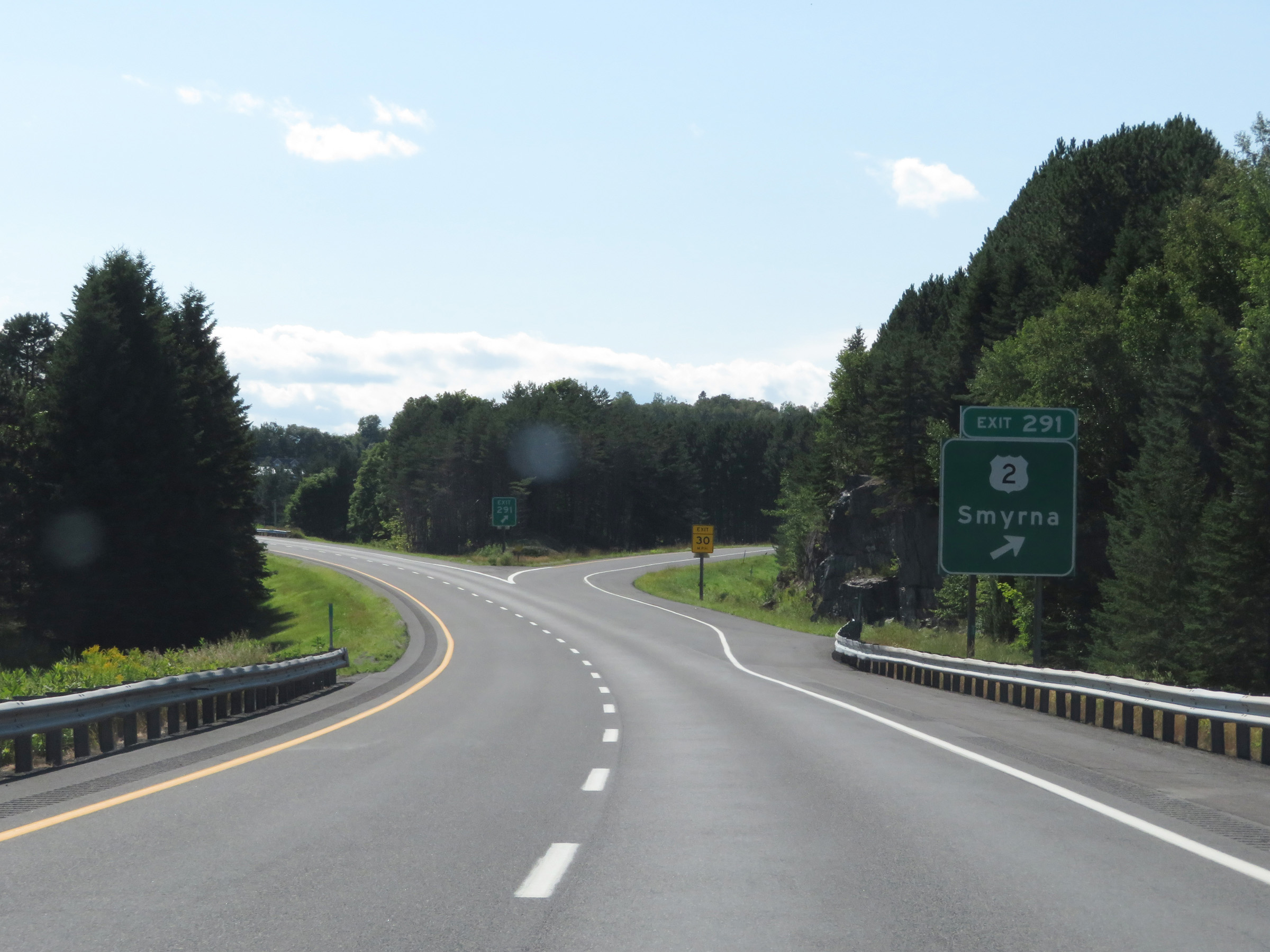 Interstate 95 South (Maine Turnpike) at Exit 86: ME 9 - Sabattus / Lisbon (Photo taken 8/8/17). |