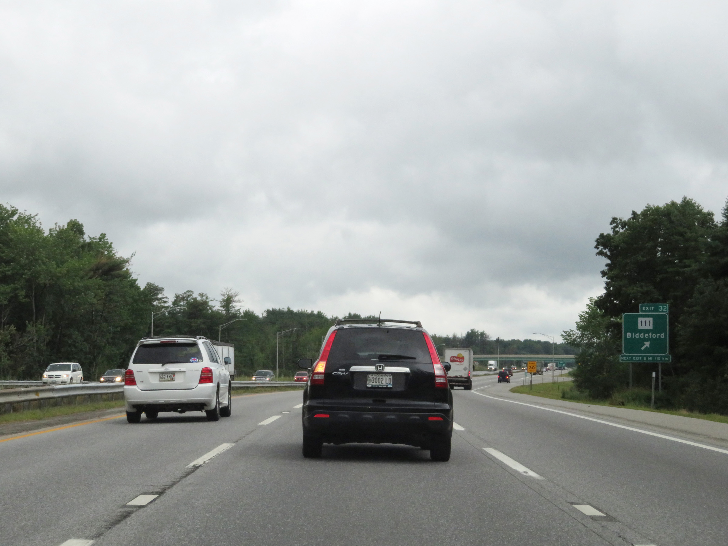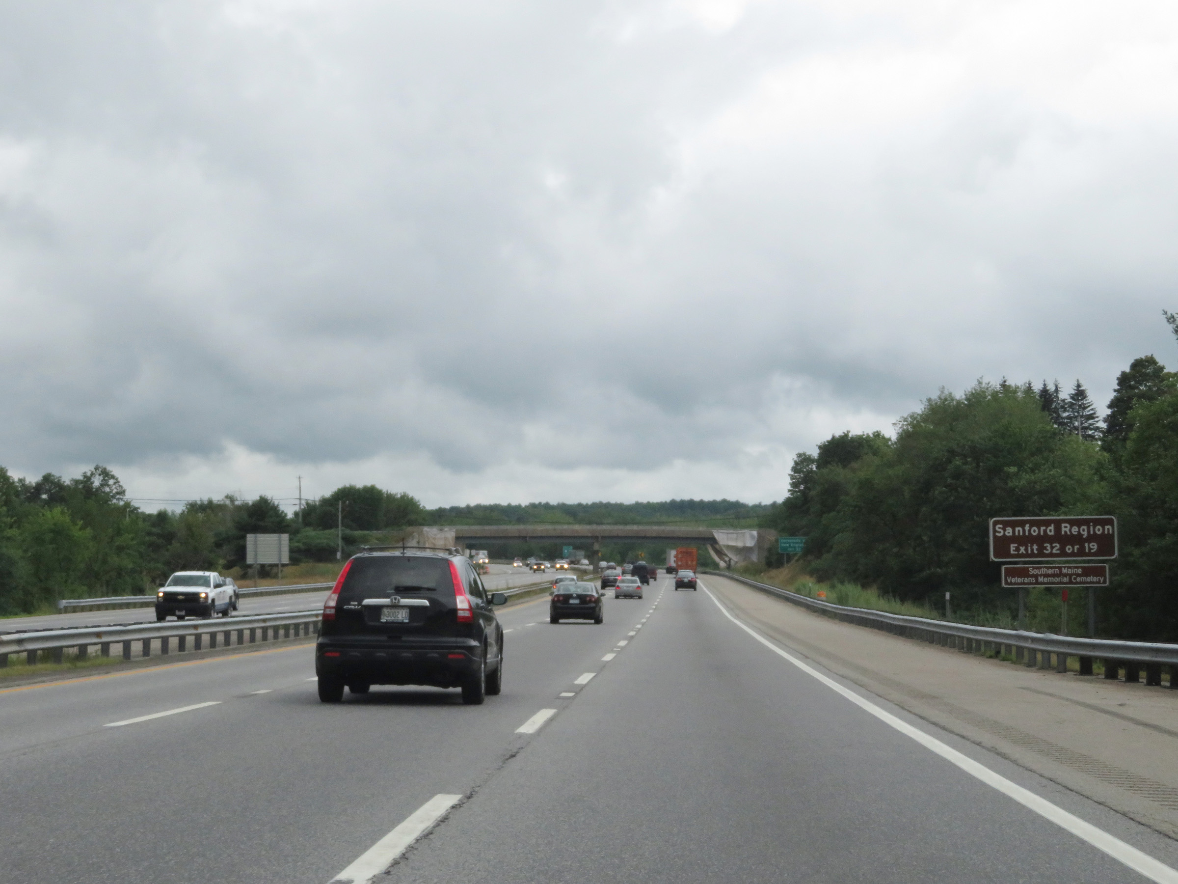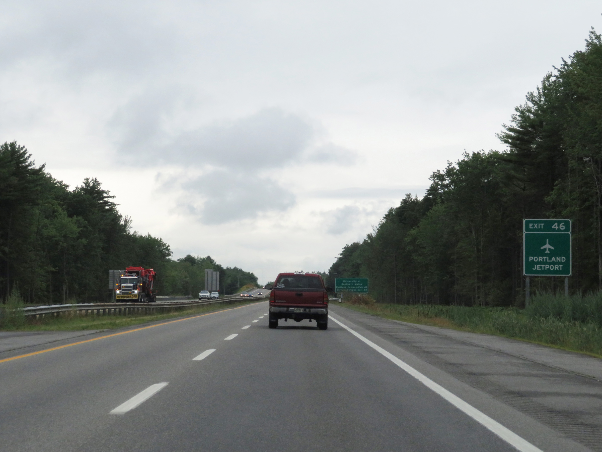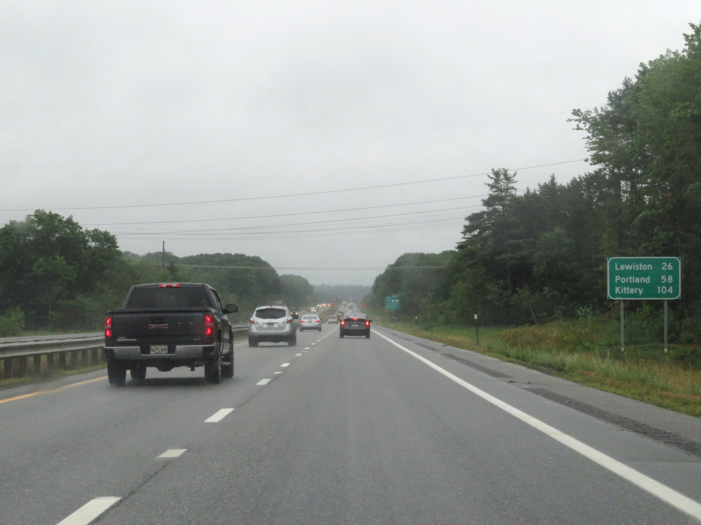 Interstate 95 South (Maine Turnpike) approaching Exit 80 - 1/2 mile. (Photo taken 8/8/17). |