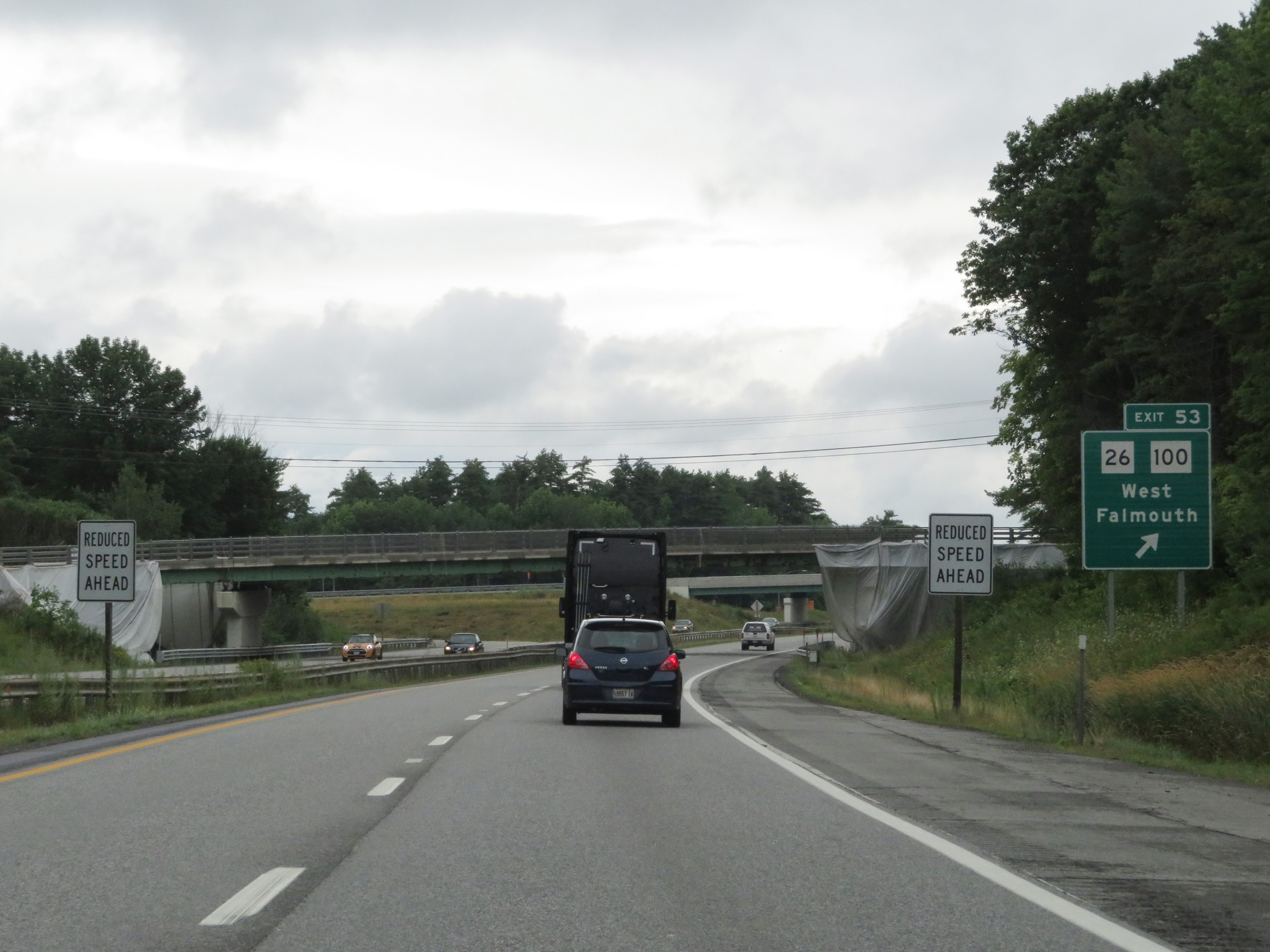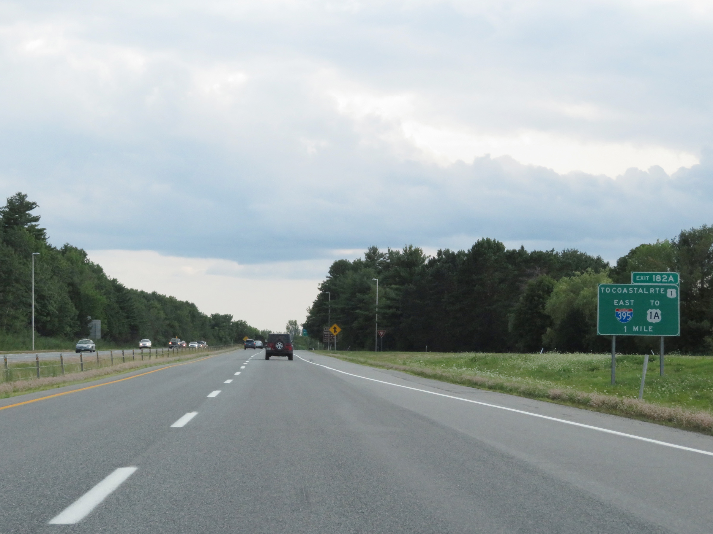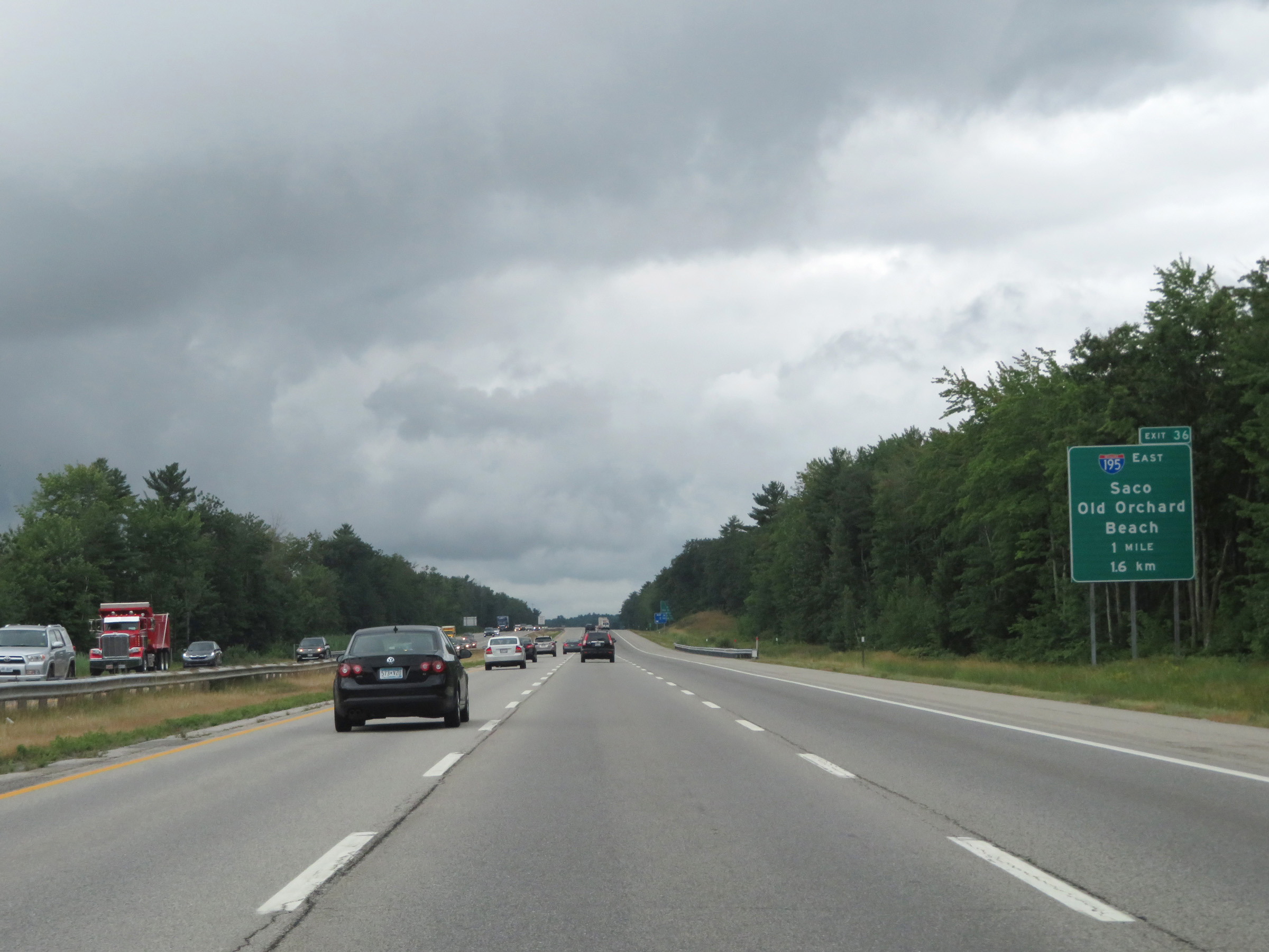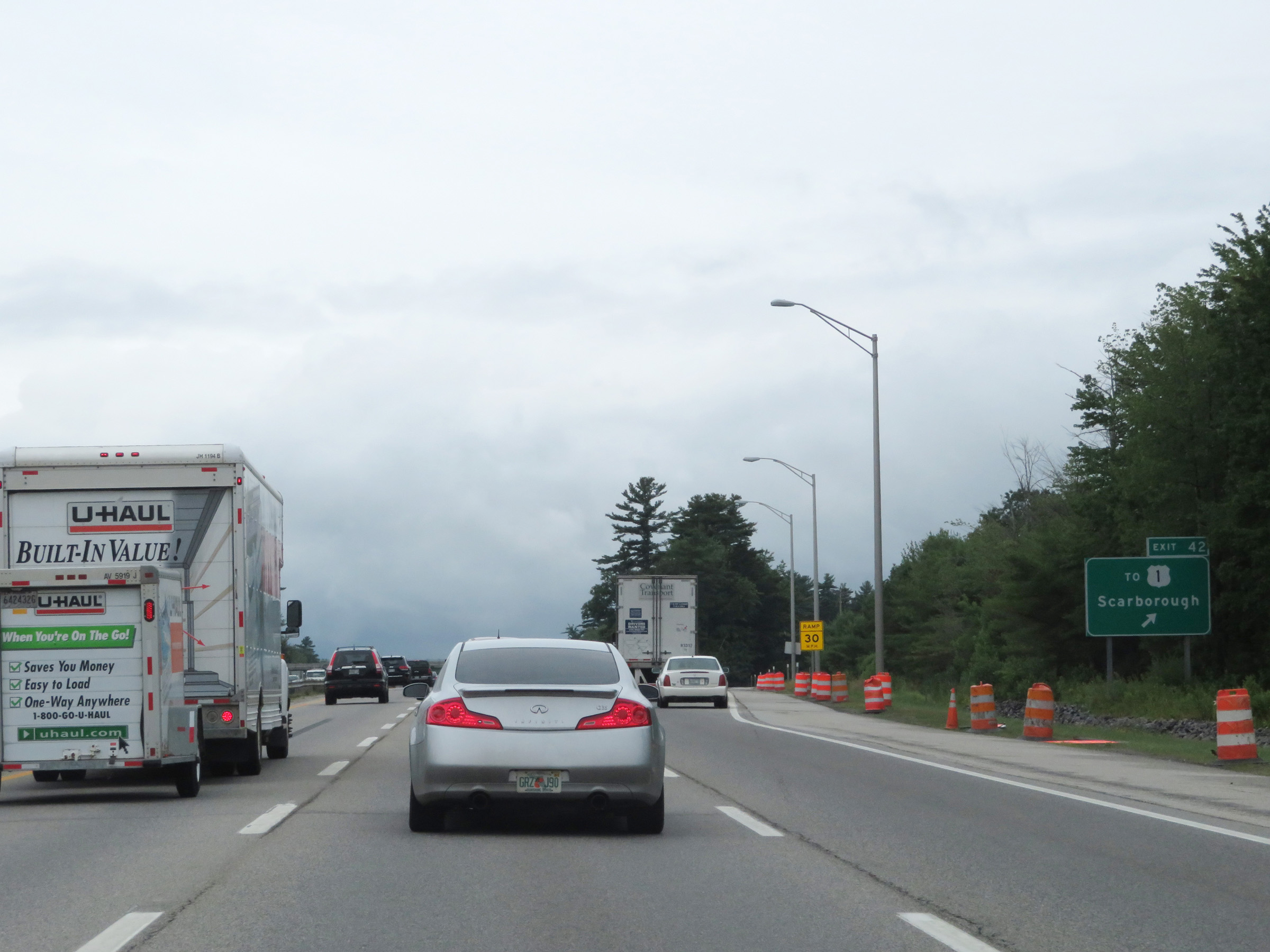Interstate 95 South (Maine Turnpike) approaching Exit 80 - 1/2 mile. (Photo taken 8/8/17). |
