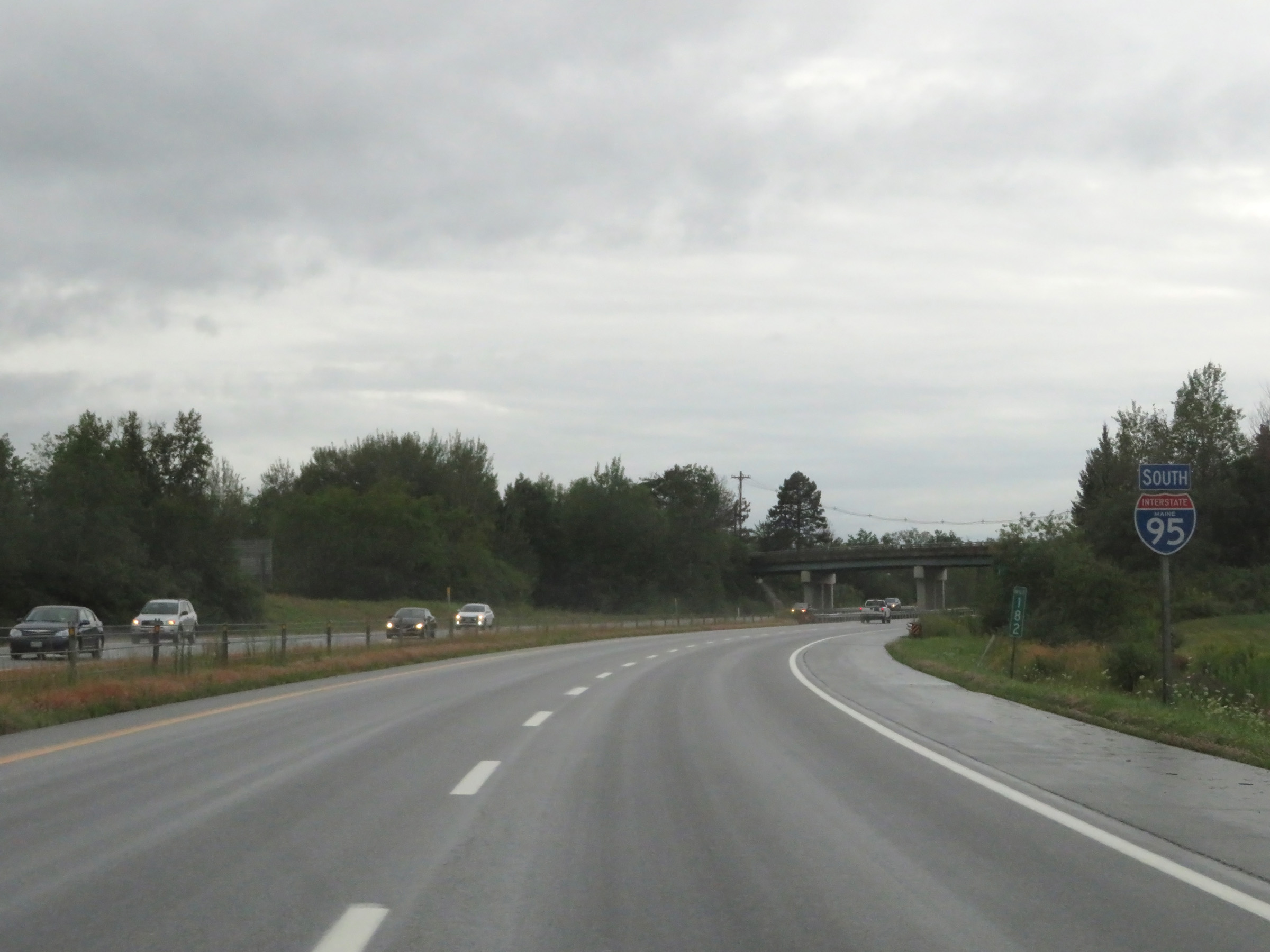 Mile marker 95 on Interstate 95 South (Maine Turnpike) in Kennebec County. (Photo taken 8/8/17). |