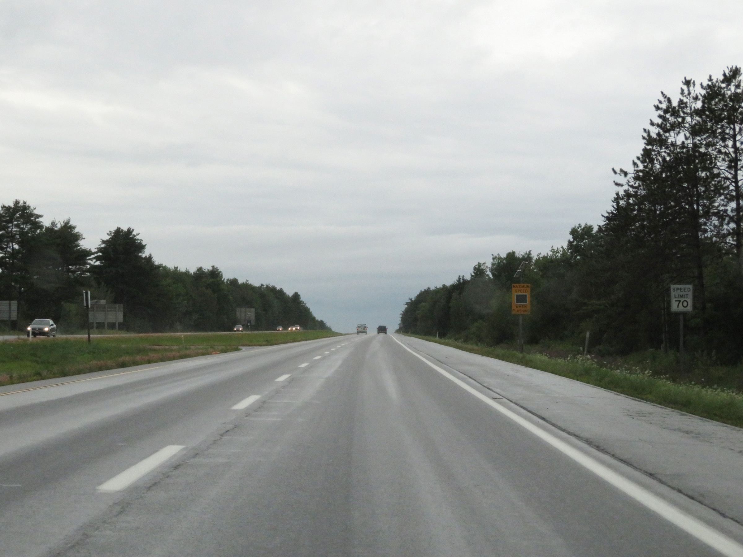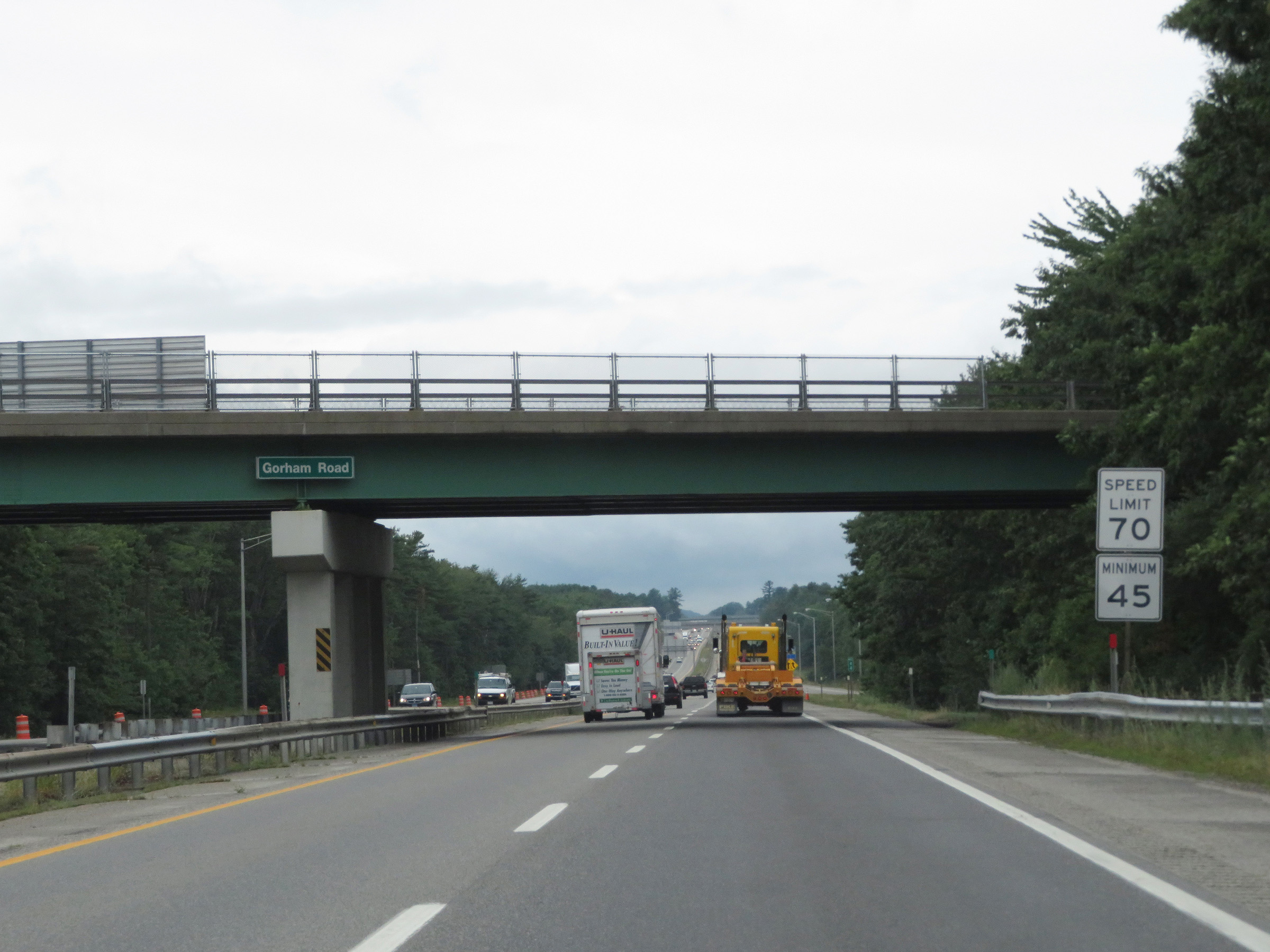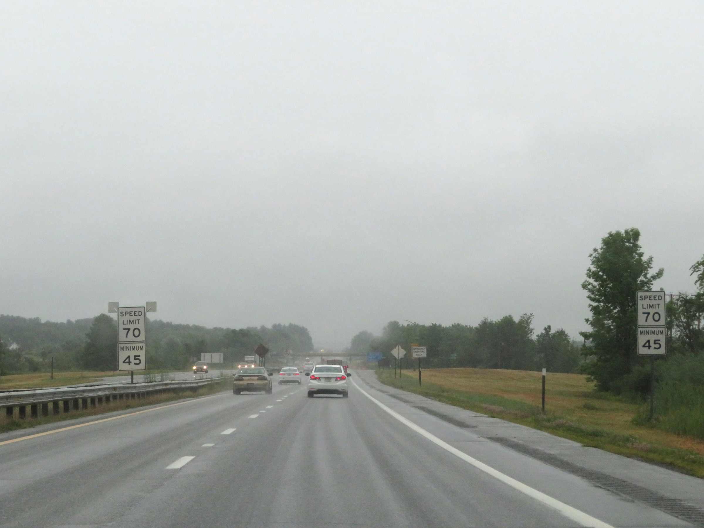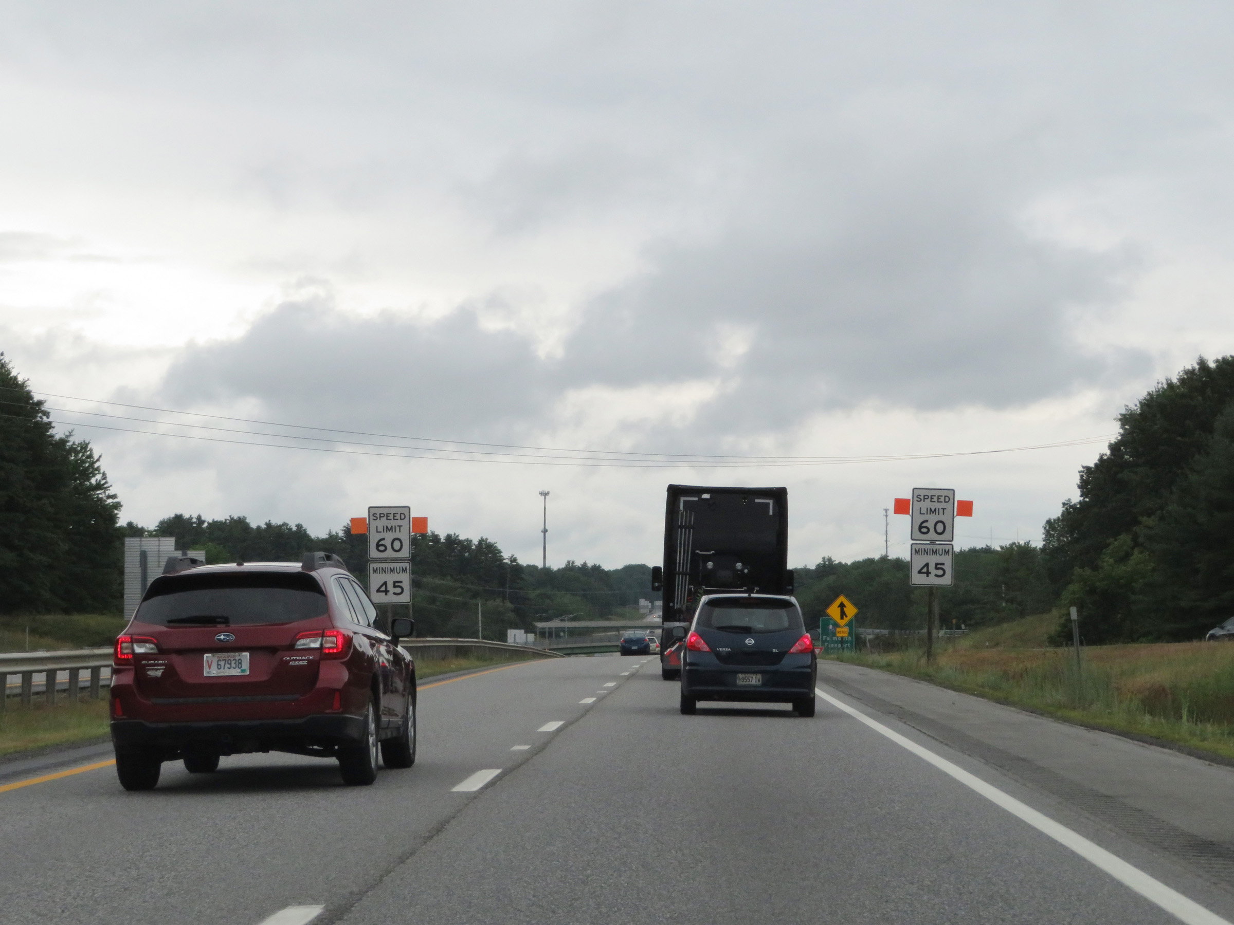 Upon entering the Maine Turnpike, the speed limits on Interstate 95 South become 70 mph maximum and 45 mph minimum. (Photo taken 8/8/17). |