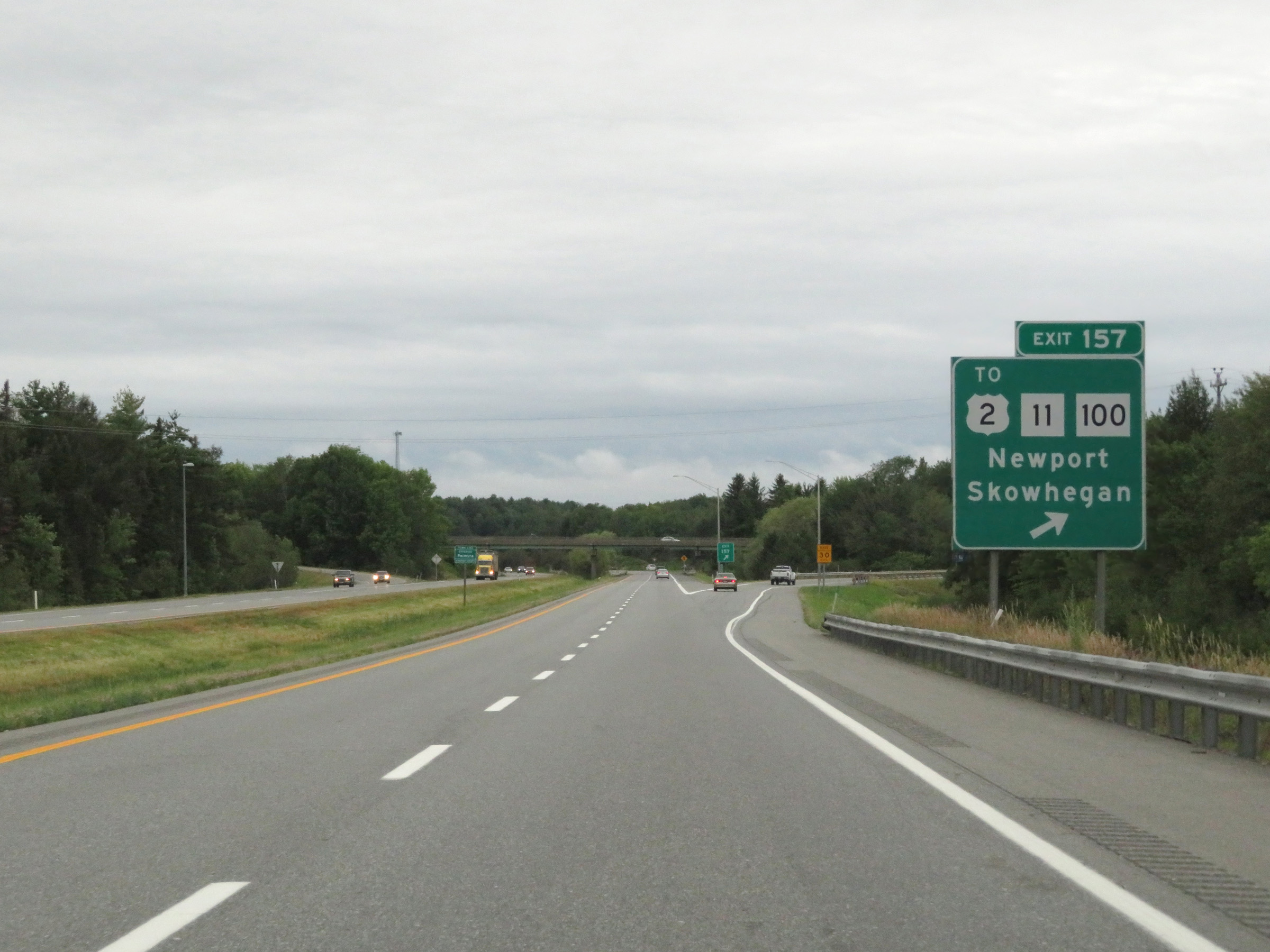 Interstate 95 South at Exit 109B: US 202 West / ME 11 West / ME 17 West / ME 100 West - Winthrop (Photo taken 8/8/17). |