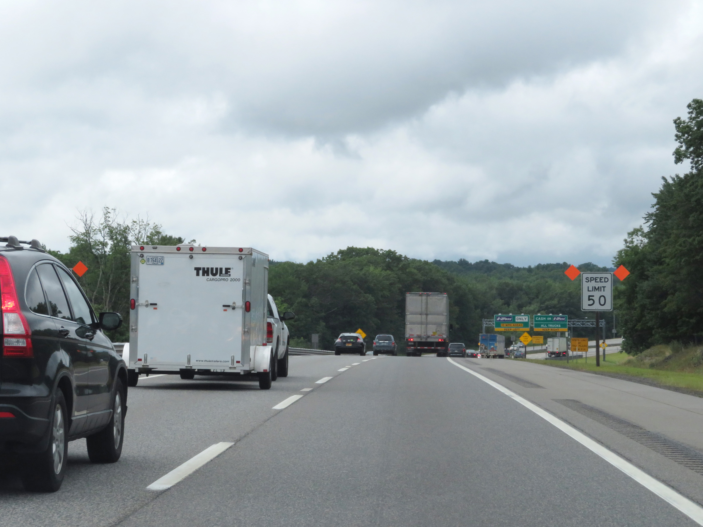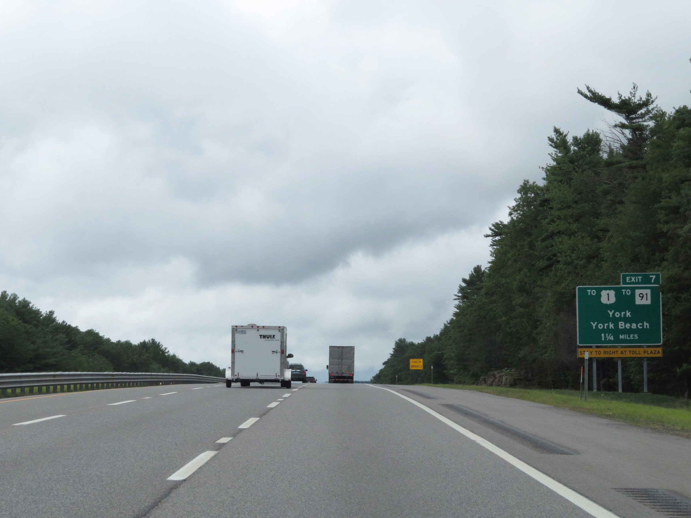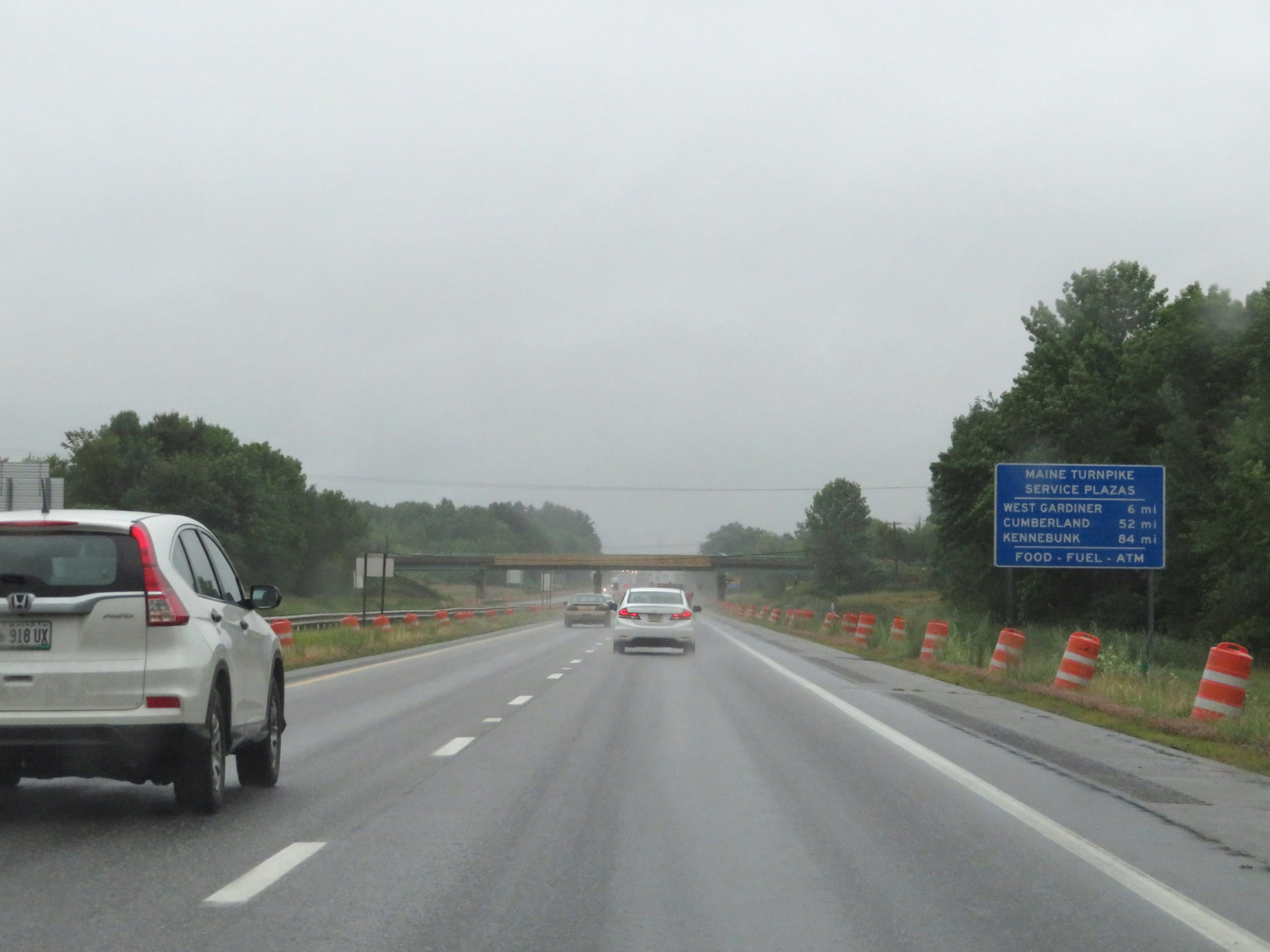 Interstate 95 South (Maine Turnpike) approaching the West Gardiner Toll Plaza - 1/4 mile. (Photo taken 8/8/17). |