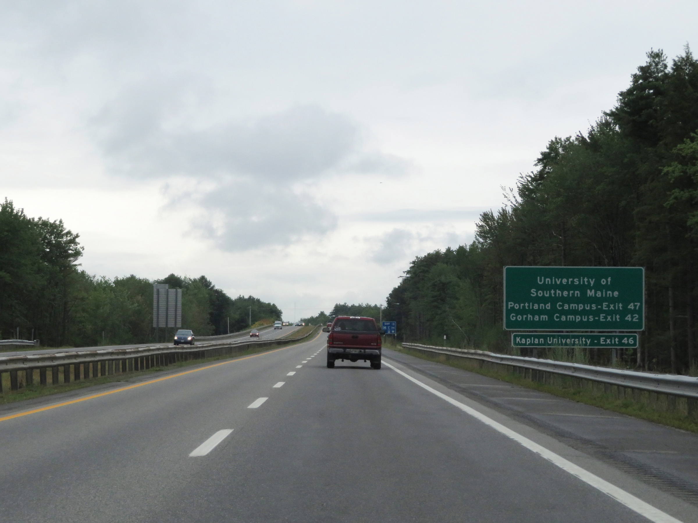 Take Exit 80 to the University of Southern Maine Lewiston Campus. (Photo taken 8/8/17). |