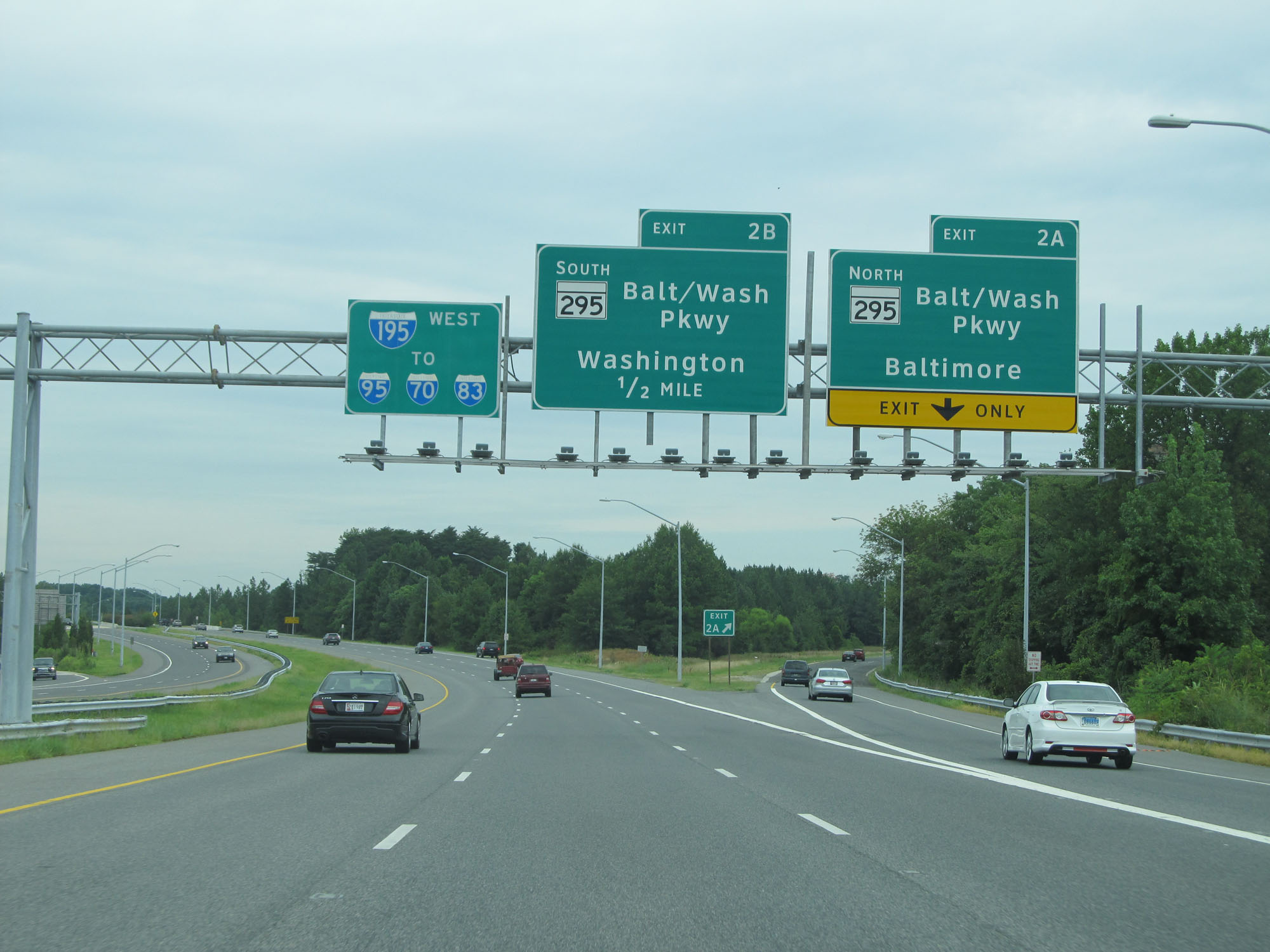 Interstate 195 West at Exit 2B: MD 295 South - Balt/Wash Pkwy / Washington (Photo taken 8/7/15). |