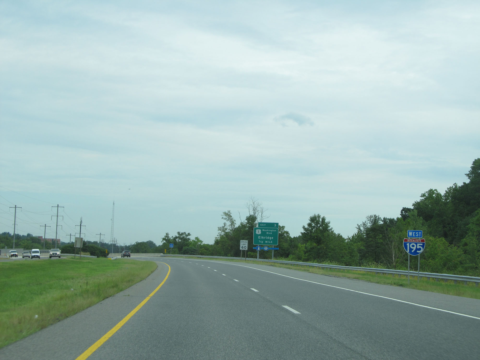 View on Interstate 195 West approaching Exit 1. (Photo taken 8/7/15). |