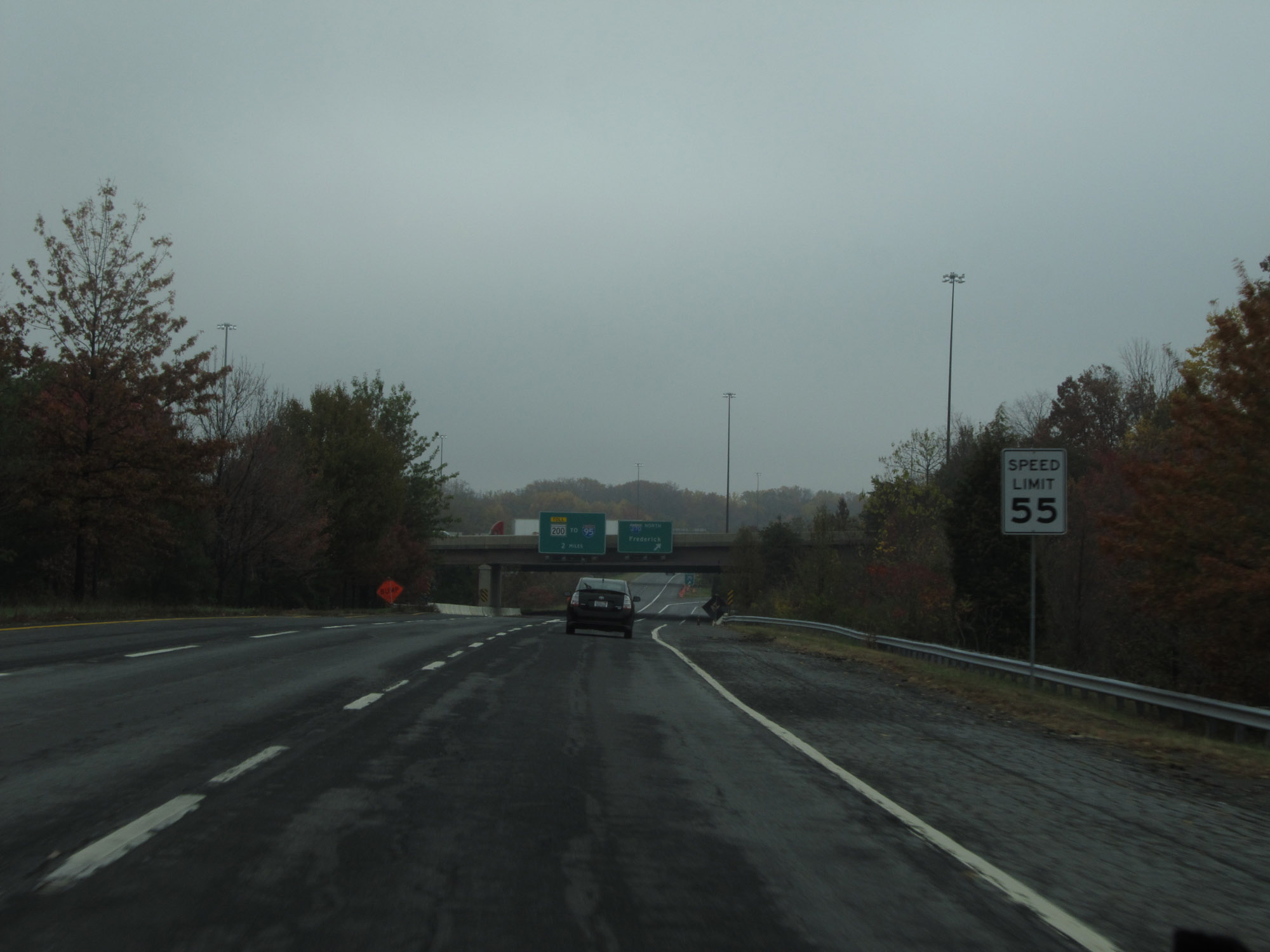 A view on the ramp for Exit 3B at the eastern terminus of Interstate 370. (Photo taken 11/5/15). |