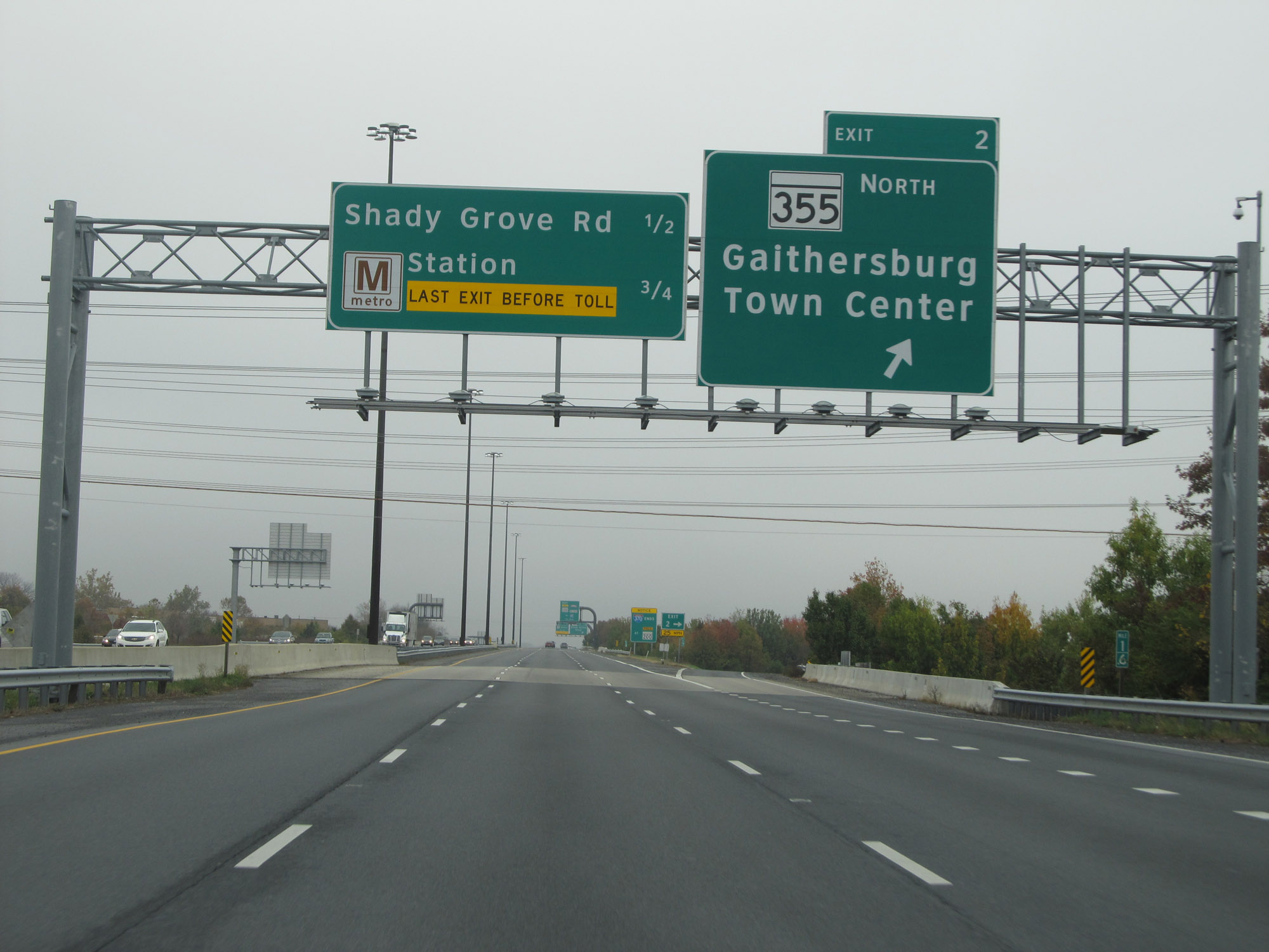 Interstate 370 East at Exit 2: MD 355 North - Gaithersburg Town Center (Photo taken 11/5/15). |
