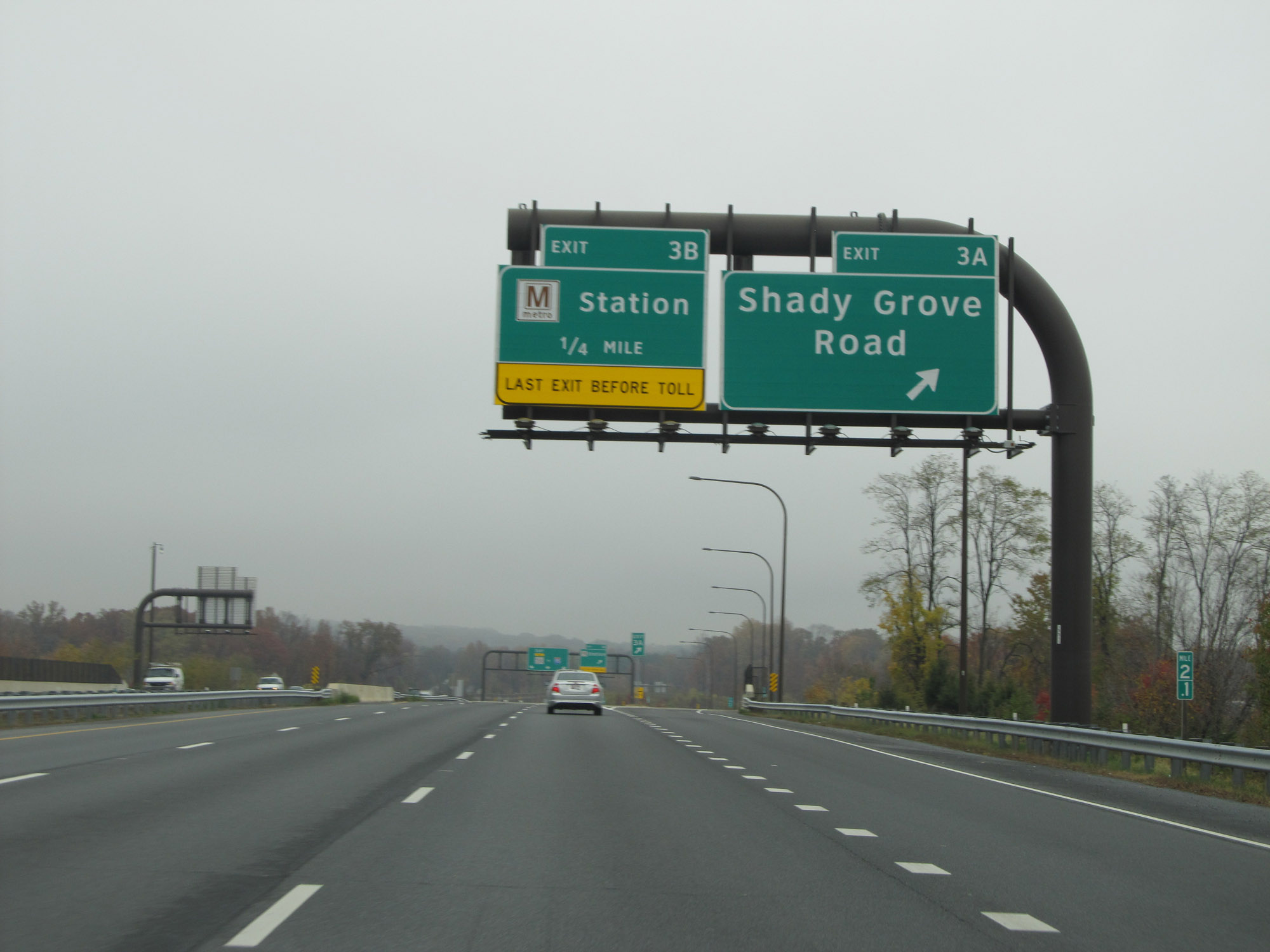 Interstate 370 East at Exit 3A: Shady Grove Road (Photo taken 11/5/15). |