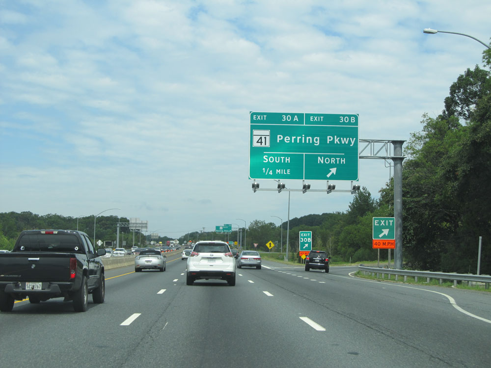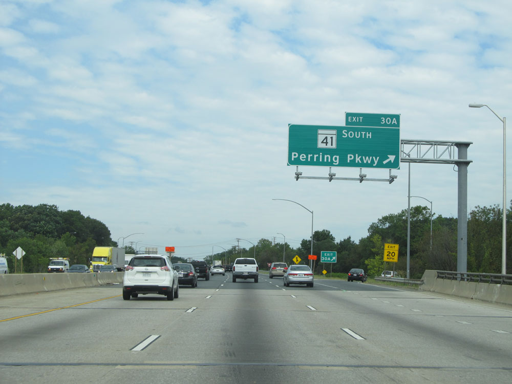 Interstate 695 Outer Loop (West) at Exit 30A: MD 41 South - Perring Pkwy (Photo taken 8/7/15).