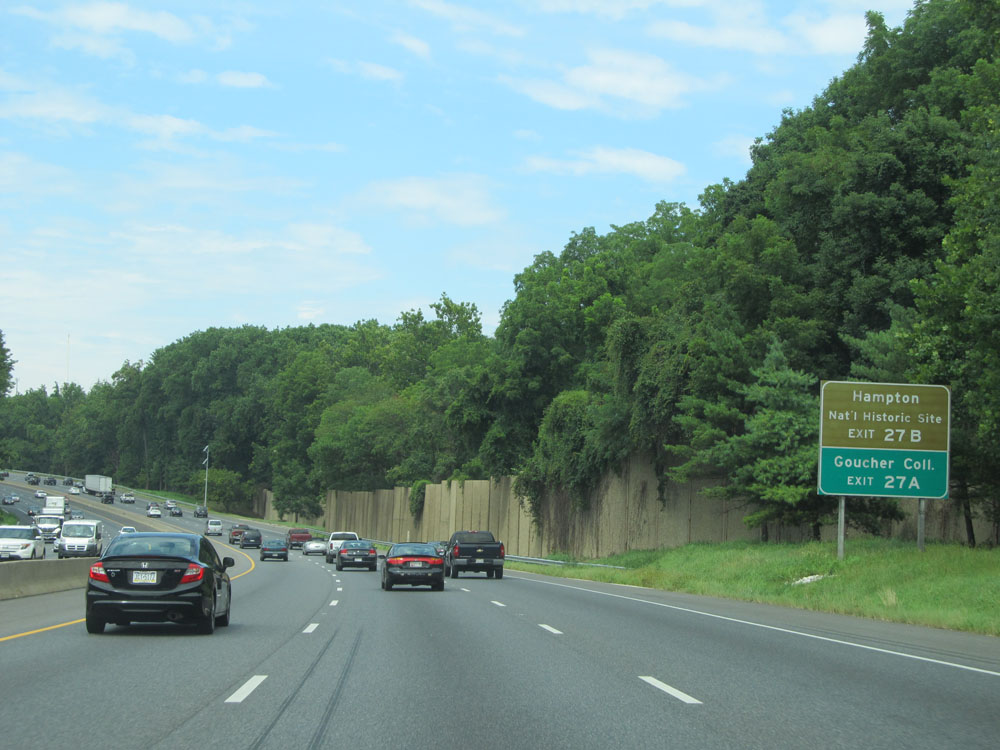 Take Exit 27B to Hampton National Historic Site. Take Exit 27A to Goucher College. (Photo taken 8/7/15).
