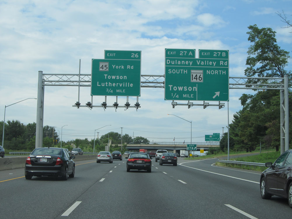Interstate 695 Outer Loop (West) at Exit 27B: MD 146 North - Dulaney Valley Rd (Photo taken 8/7/15).
