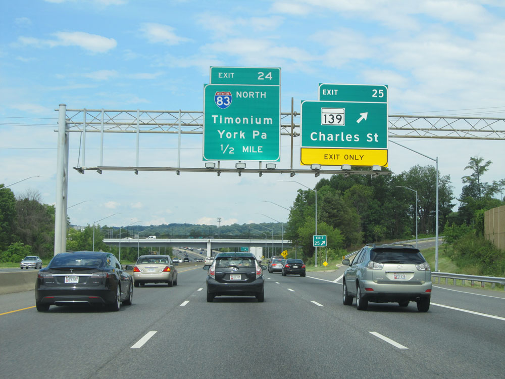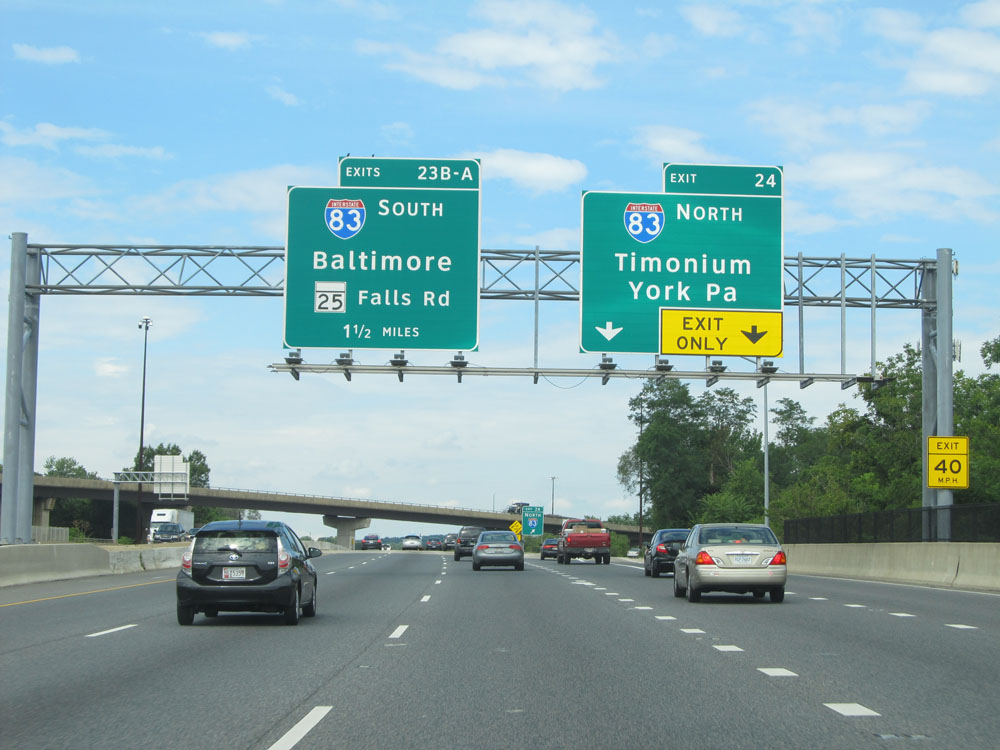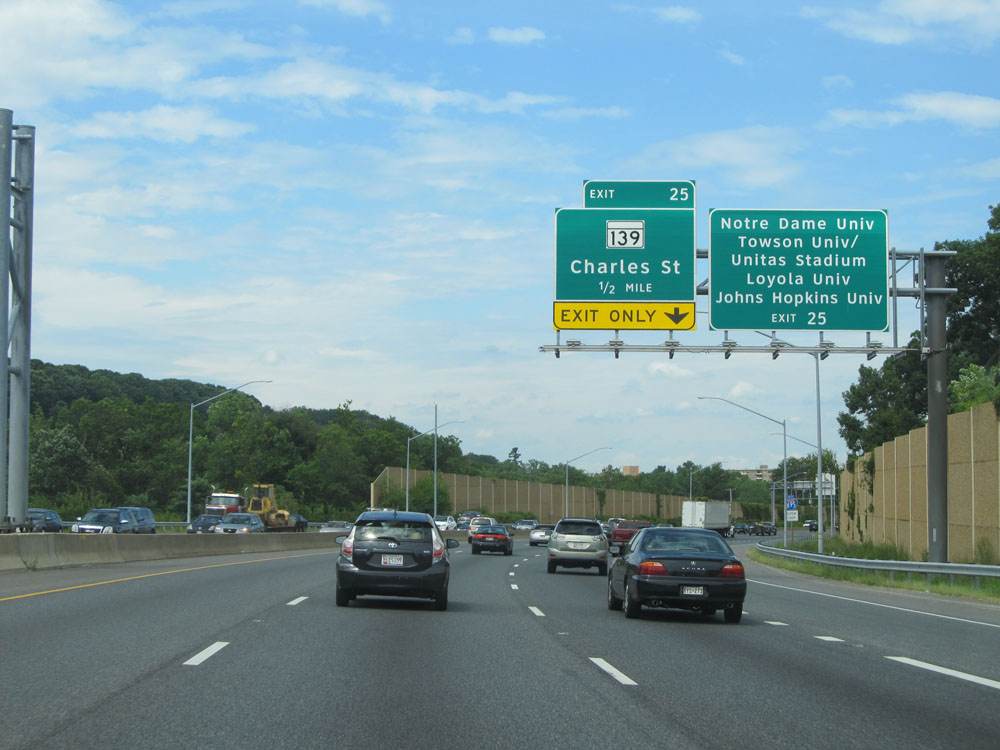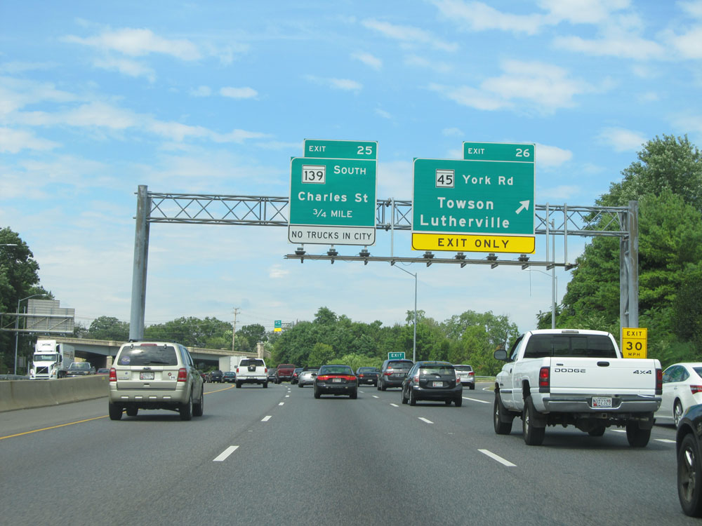Interstate 695 Outer Loop (West) at Exit 26: MD 45 - York Rd / Towson / Lutherville (Photo taken 8/7/15).