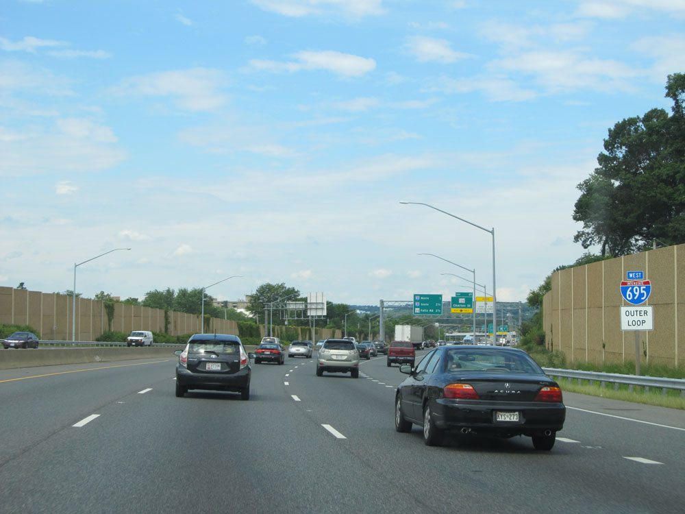Interstate 695 Outer Loop (North) assurance shield as I-695 curves to the north. (Photo taken 8/9/15).