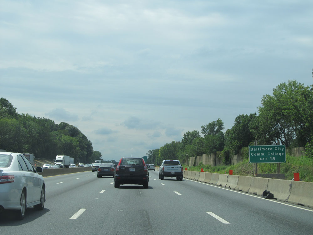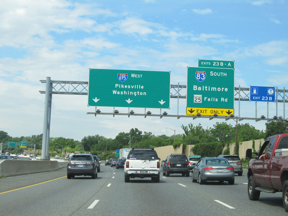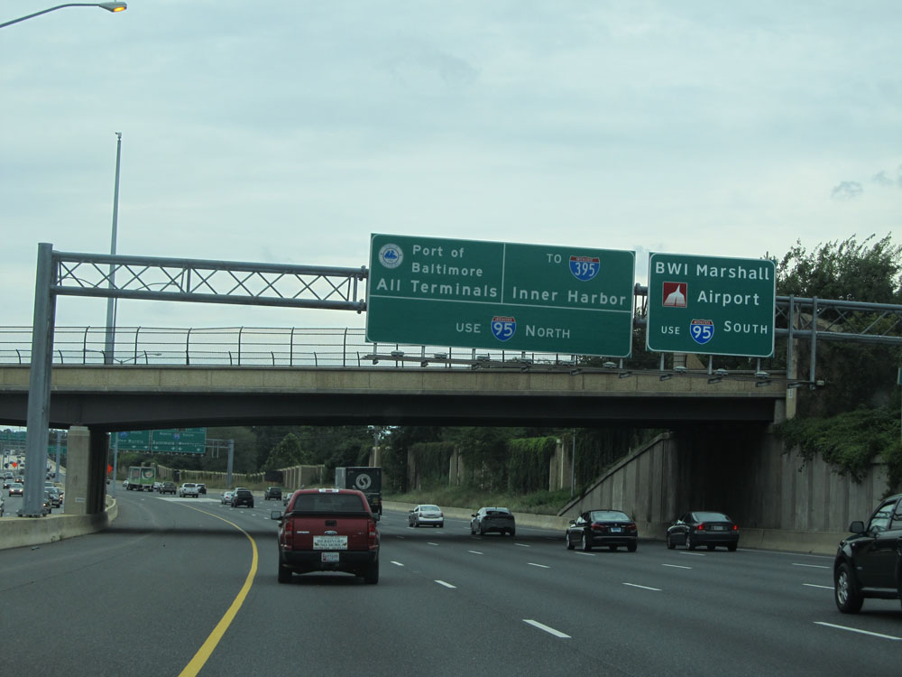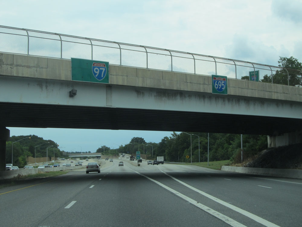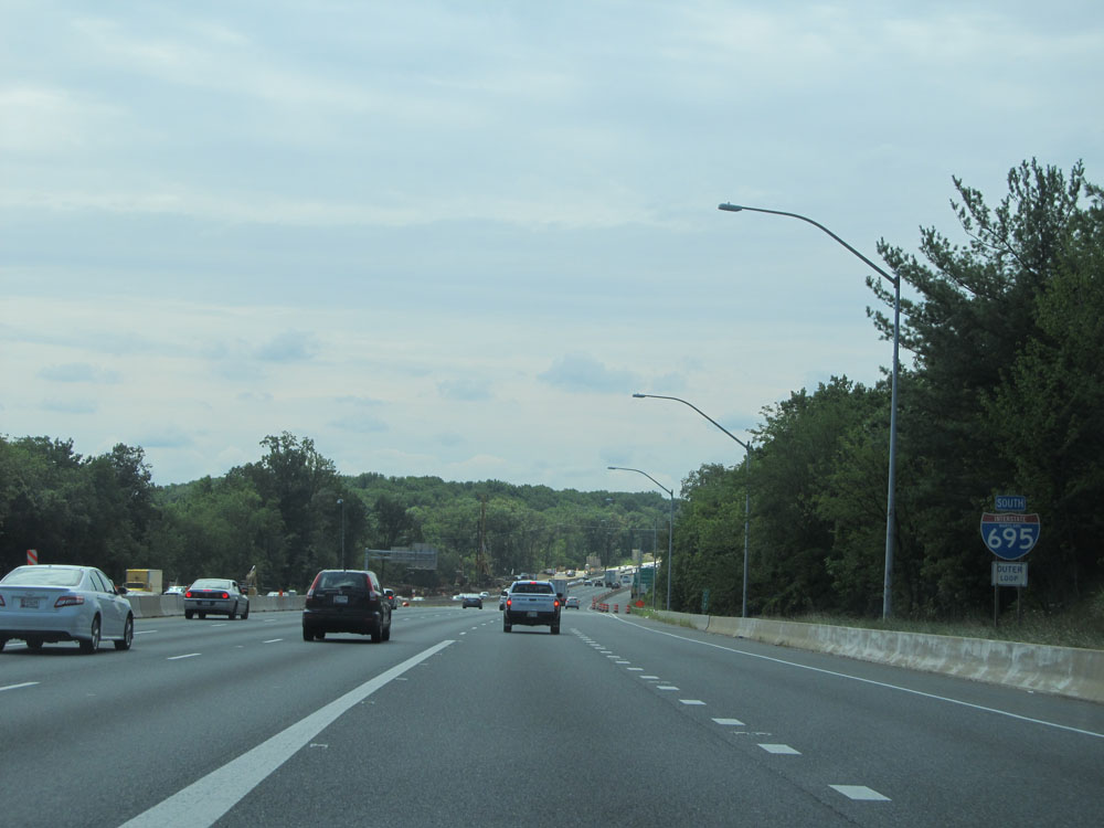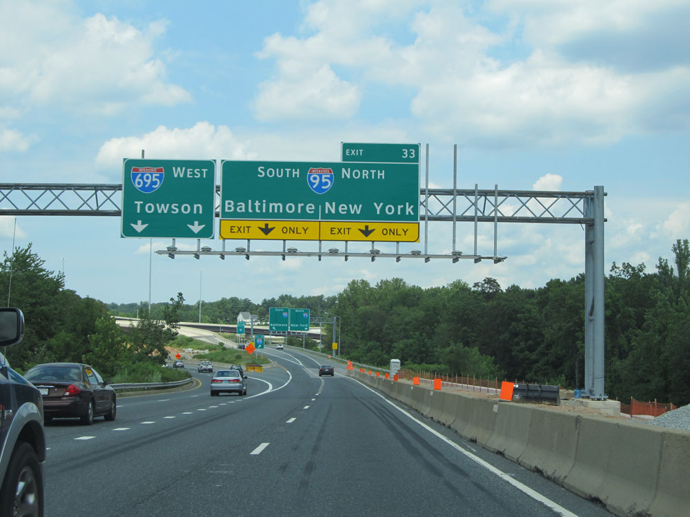 Interstate 695 Outer Loop (North) at Exit 33: Interstate 95 - New York / Baltimore (Photo taken 8/9/15).