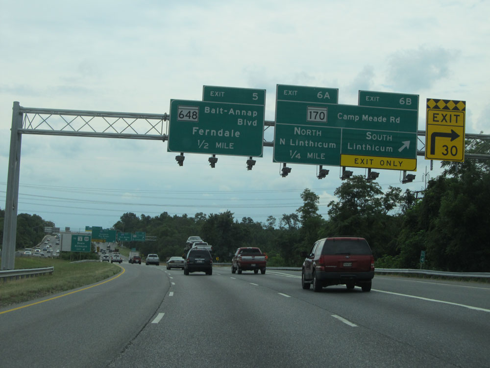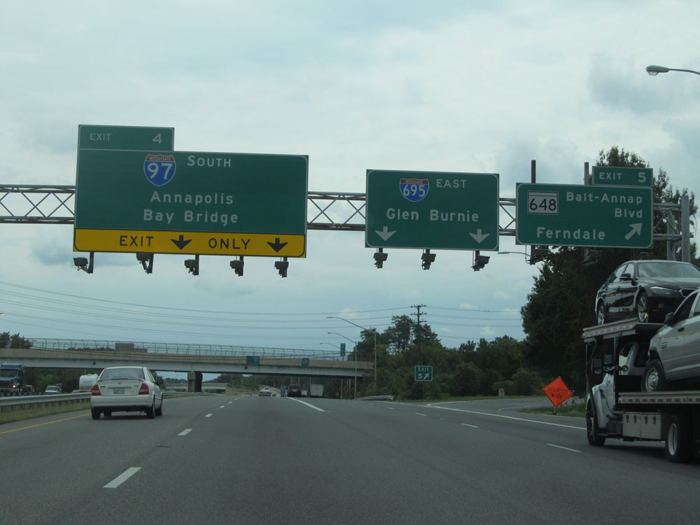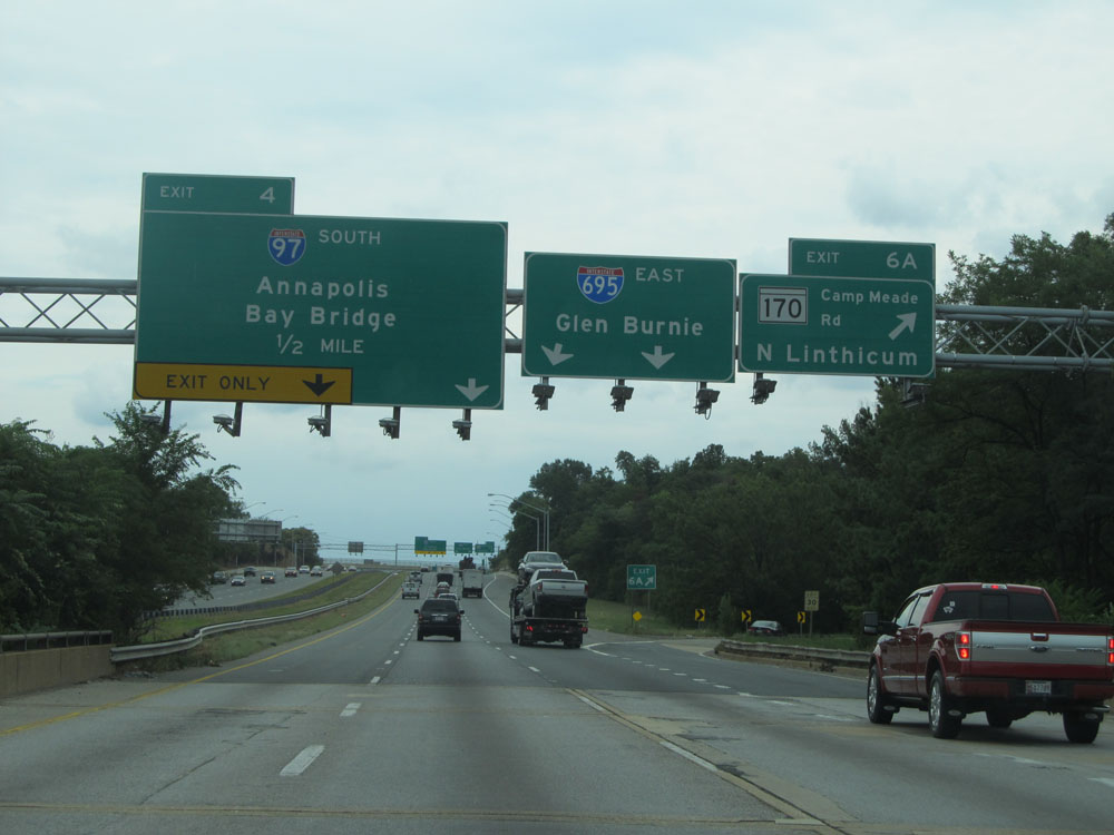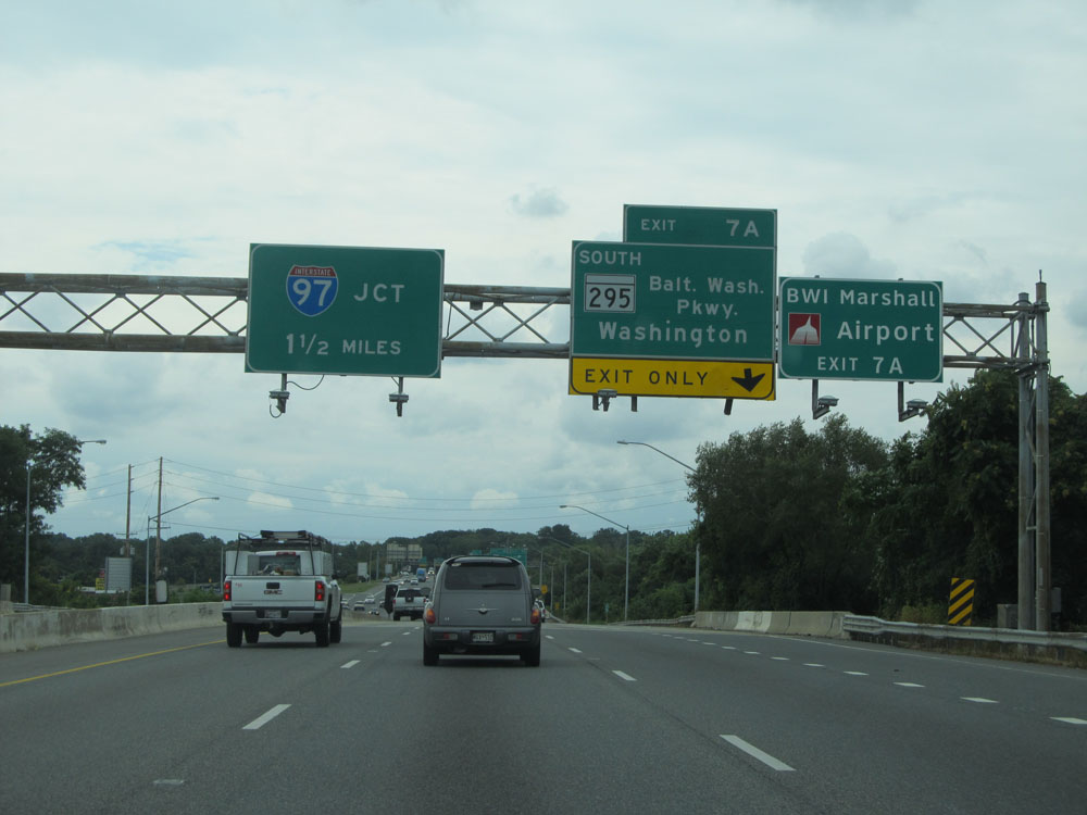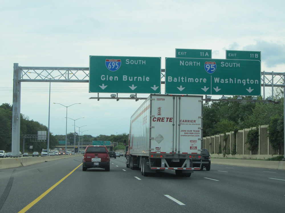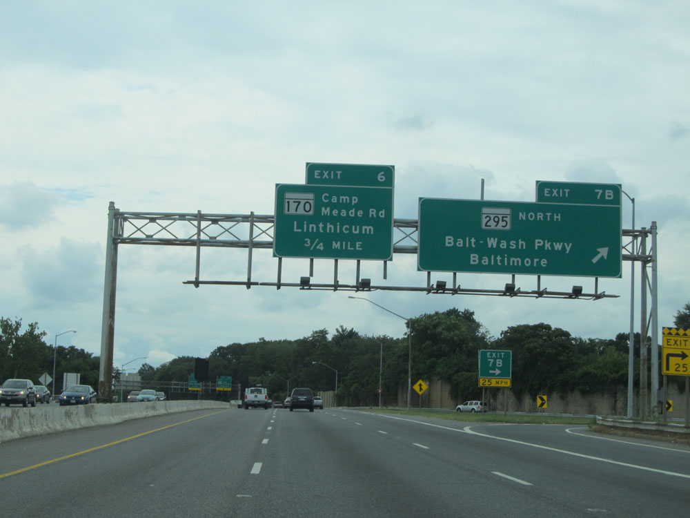 Interstate 695 Outer Loop (North) at Exit 33: Interstate 95 - New York / Baltimore (Photo taken 8/9/15).