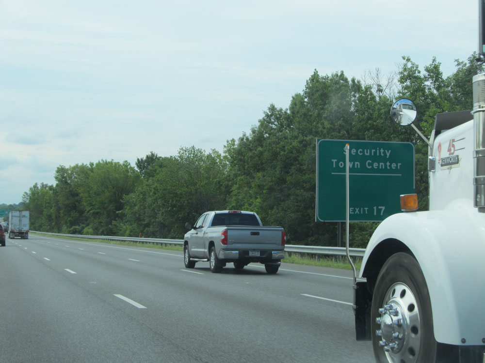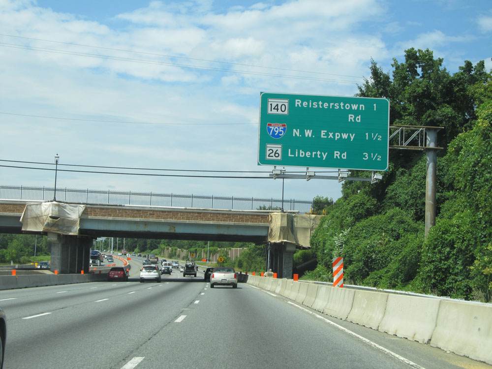 Interstate 695 Outer Loop (West) at Exit 28: Providence Road (Photo taken 8/7/15).