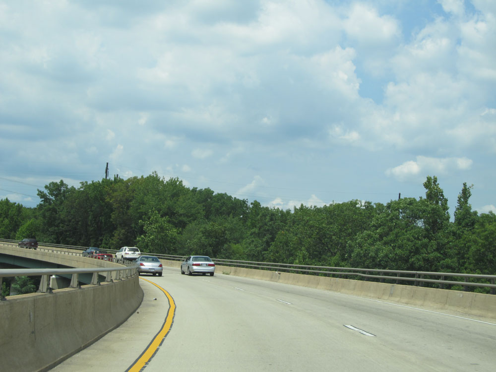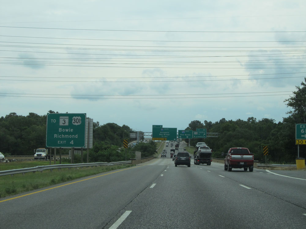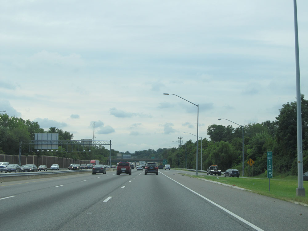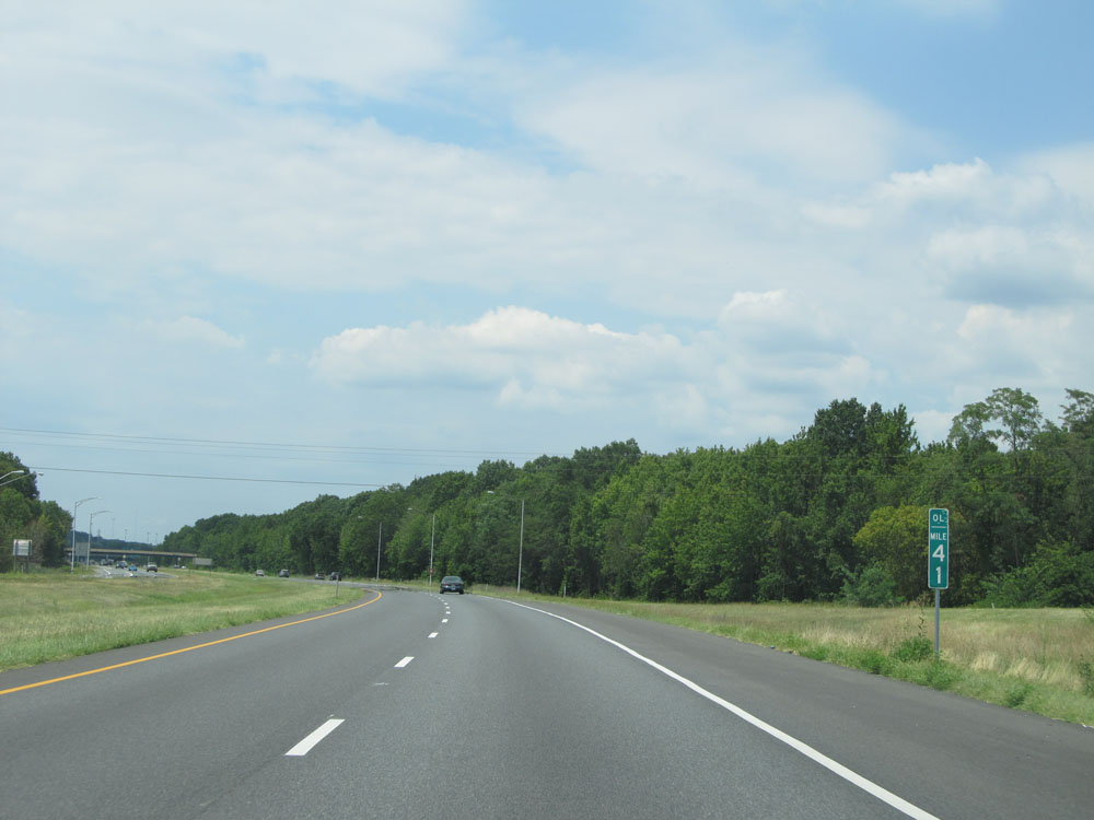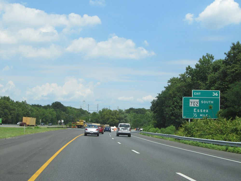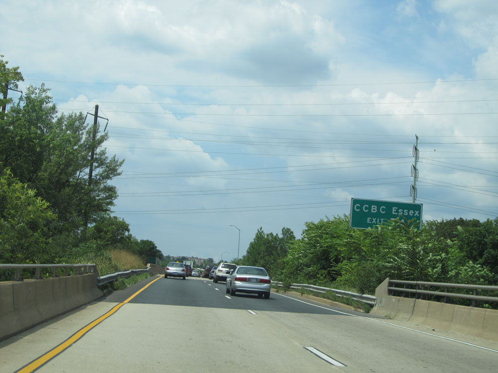 View on Interstate 695 Outer Loop (North) just past Exit 36, as it curves back to the north after heading east and bypassing downtown Essex briefly. (Photo taken 8/9/15).