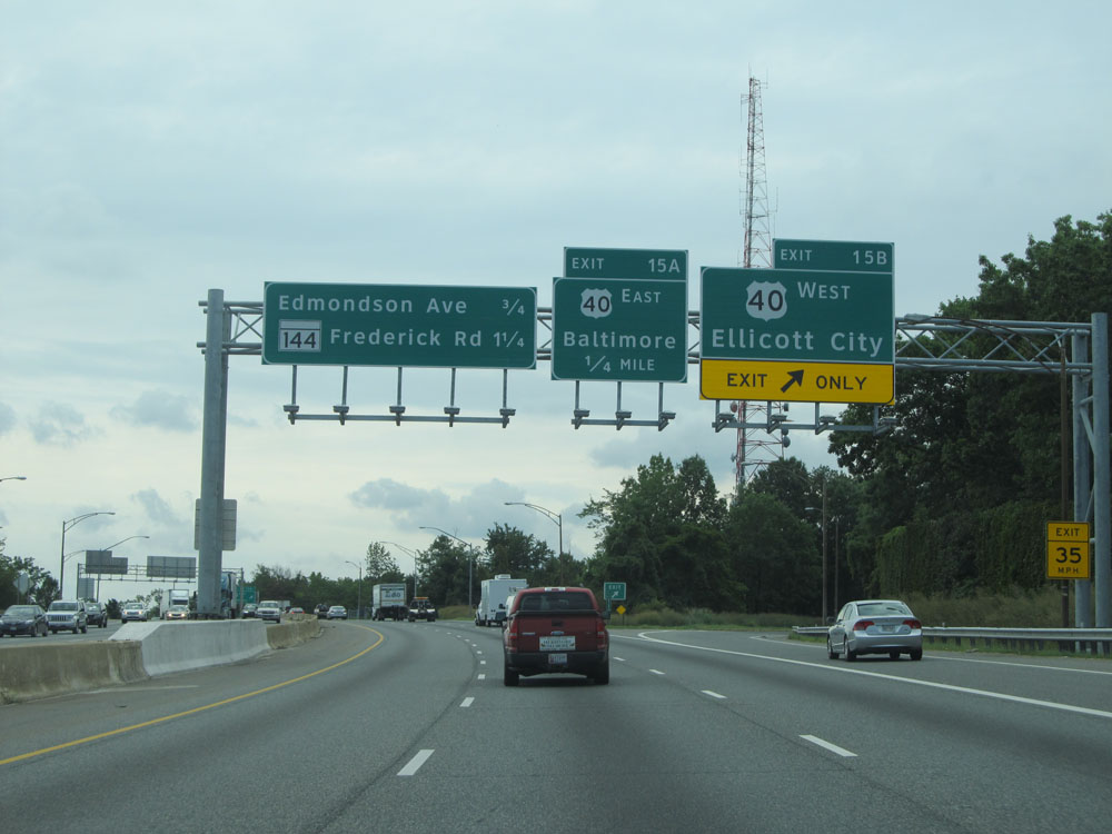 Interstate 695 Outer Loop (North) at Exit 35A: US 40 West - Pulaski Hwy / Baltimore (Photo taken 8/9/15).