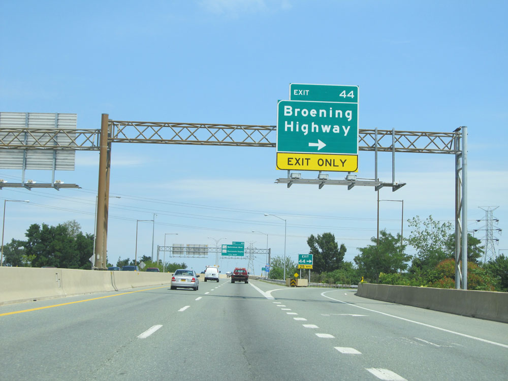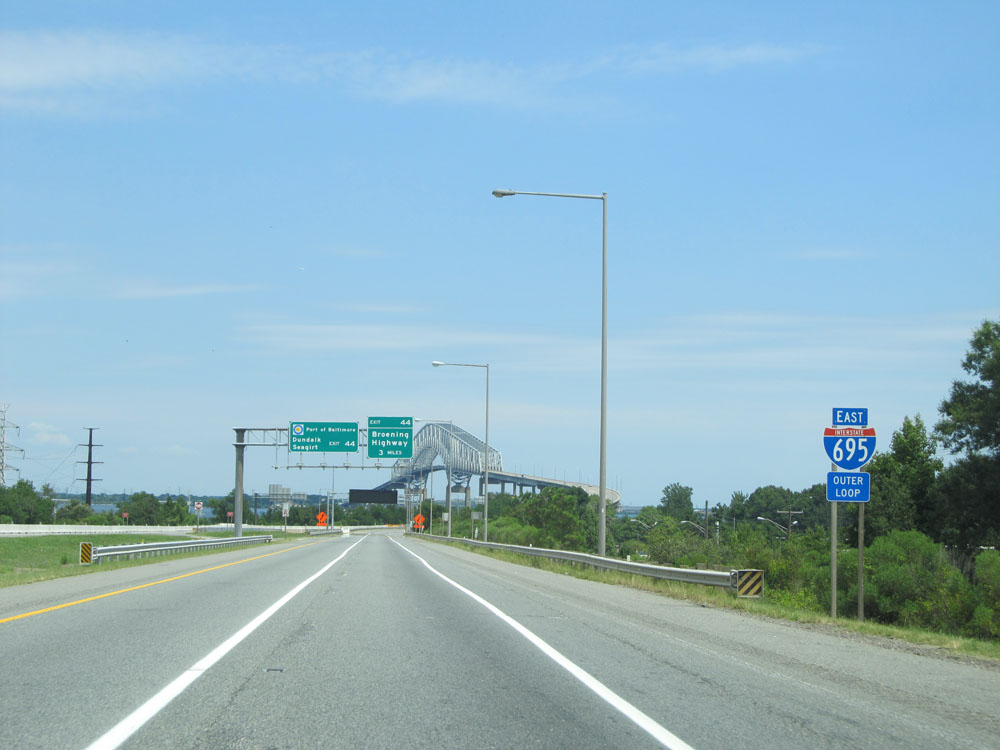 Interstate 695 Outer Loop (East) at Exit 44: Broening Highway (Photo taken 8/9/15).