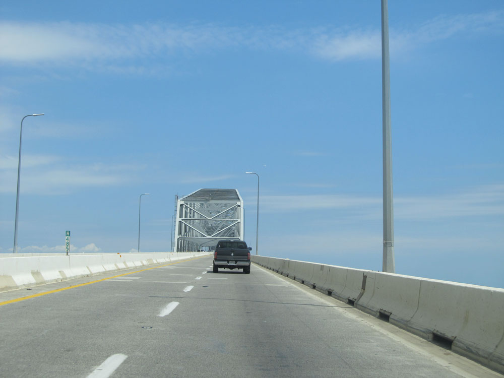 Interstate 695 Outer Loop (East) as it starts across the Francis Scott Key Bridge, near mile marker 48.5. (Photo taken 8/9/15).