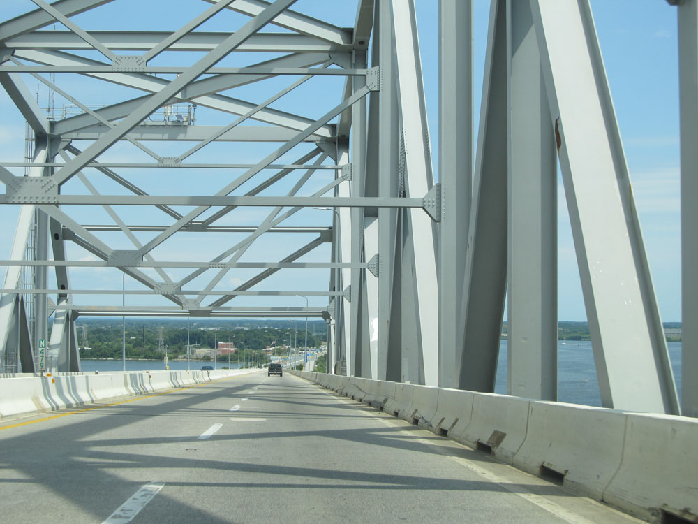 Interstate 695 Outer Loop (East): Bridge view from near mile marker 47.5, as the toll plaza comes into view in the distance. (Photo taken 8/9/15).