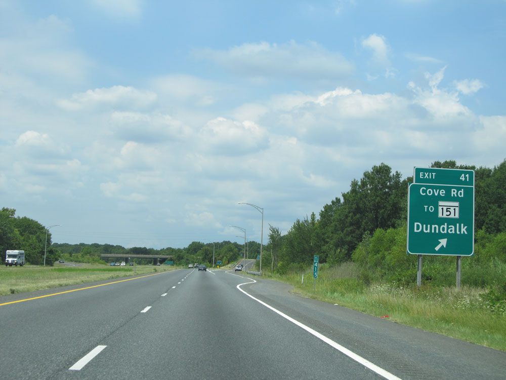 Interstate 695 Outer Loop (North) at Exit 41: To MD 151 - Cove Rd / Dundalk (Photo taken 8/9/15).