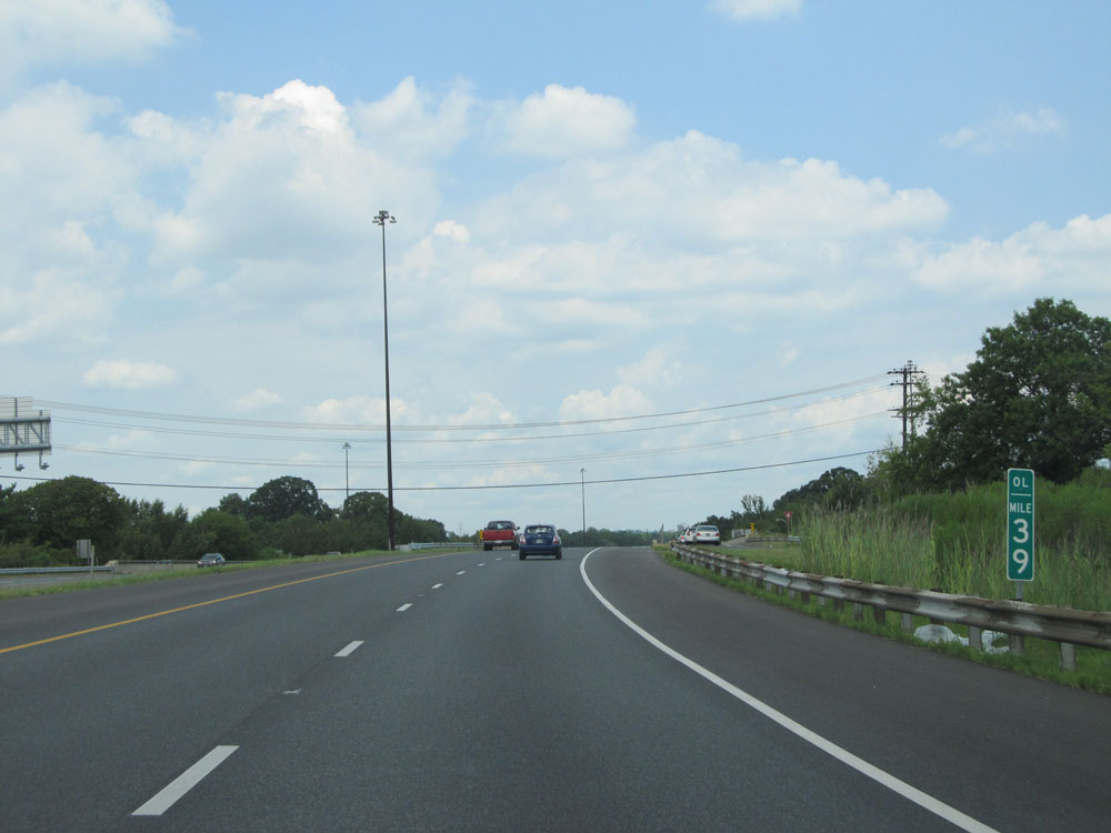 Interstate 695 Outer Loop (North) at mile marker 39. (Photo taken 8/9/15).